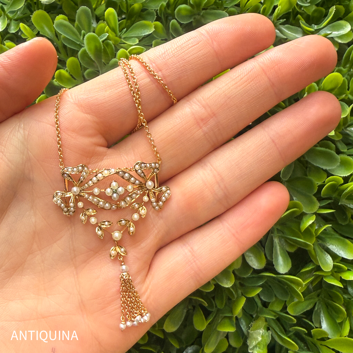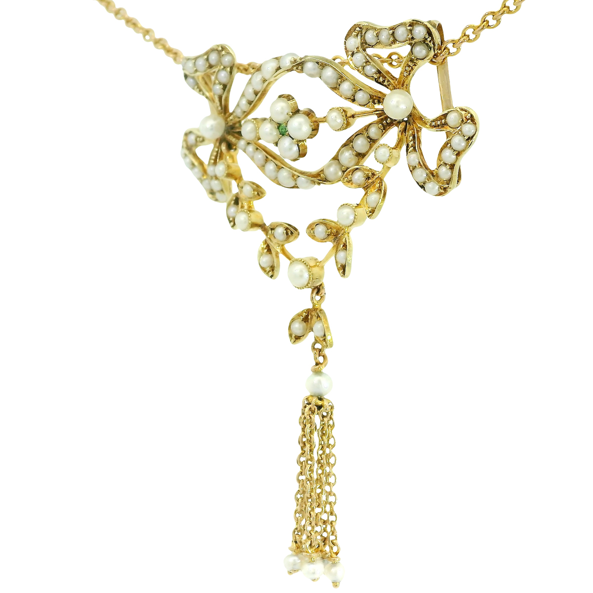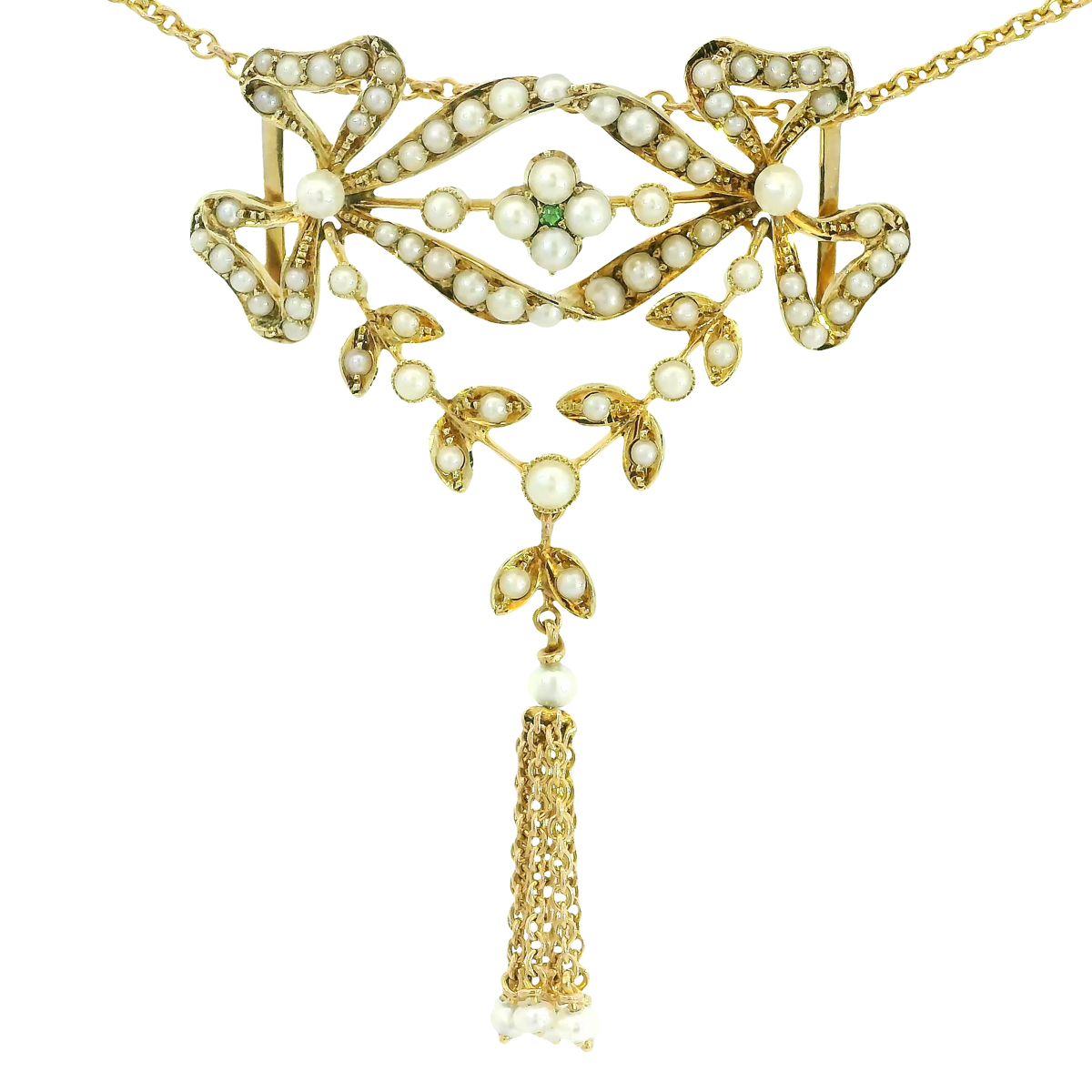 Antikes Collier der Belle Èpoque -Epoche mit Saatperlen und Peridot um 1890: