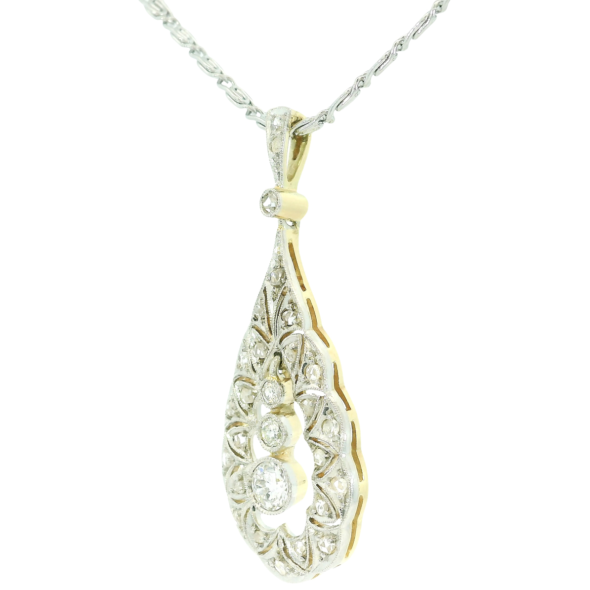 Seltener antiker Anhänger 14 Karat Gold + Platin + Diamanten Art Deco um 1925/30