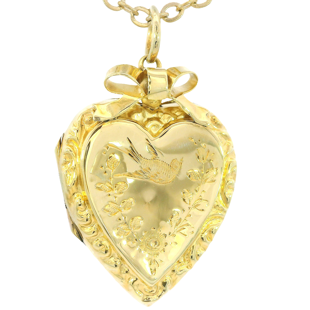Seltenes, wunderschönes und antikes Foto Medaillon zum Öffnen um 1890/1900, Gelbgold mit beidseitigem Schwalbenmotiv,