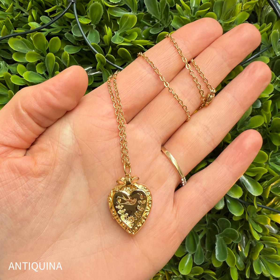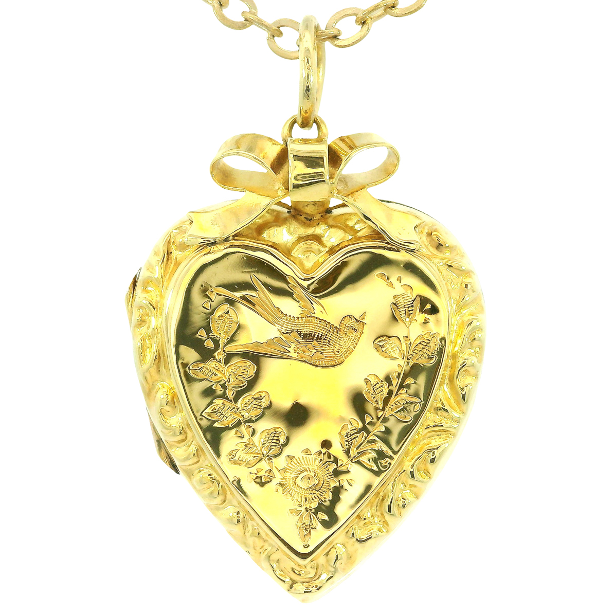 Seltenes antikes Medaillon zum Öffnen Gelbgold Schwalbenmotiv um 1890