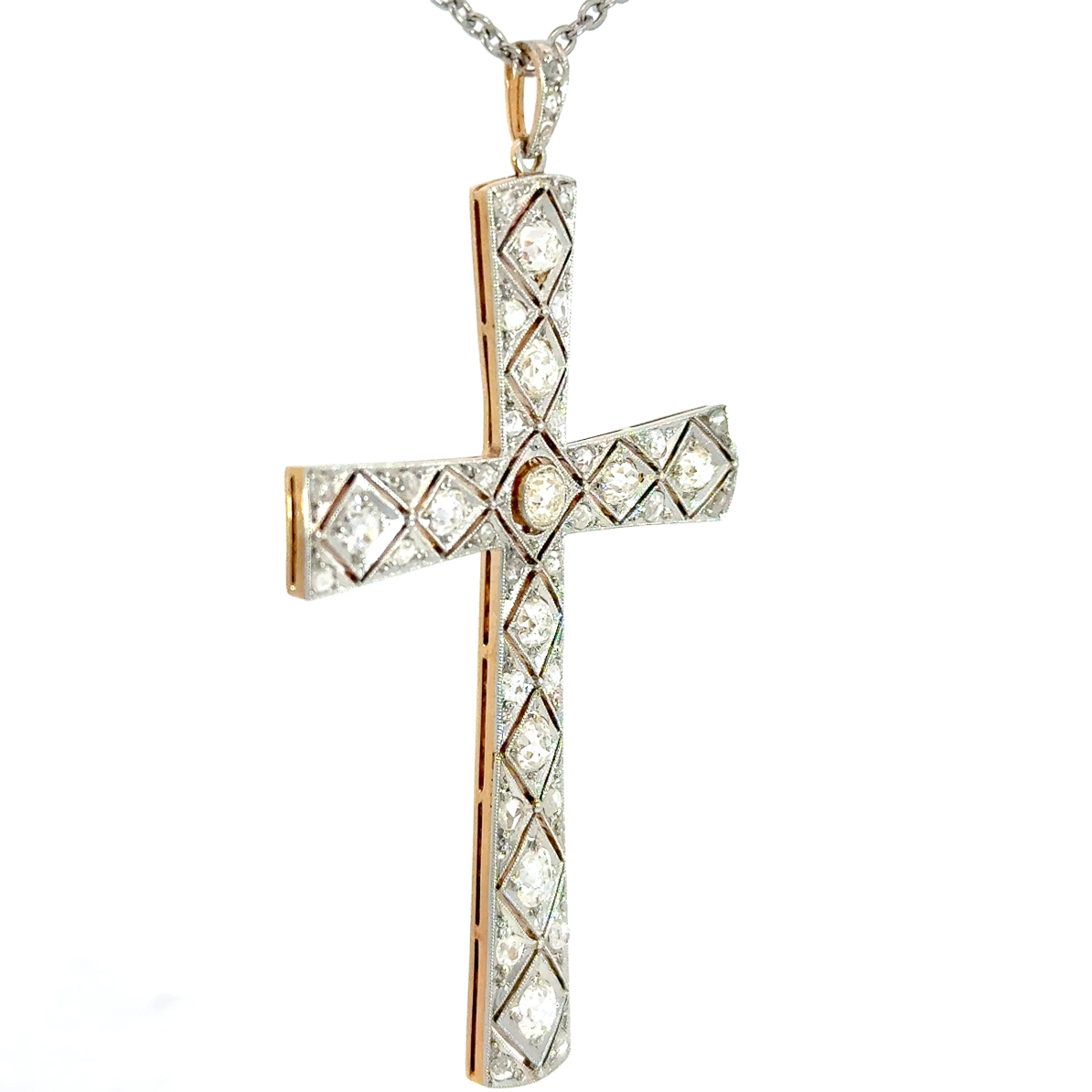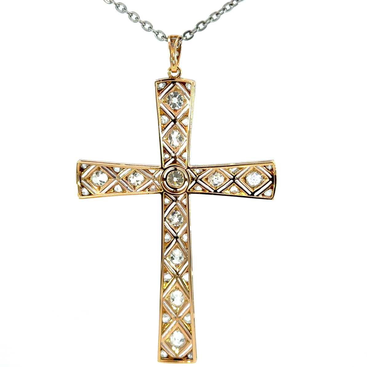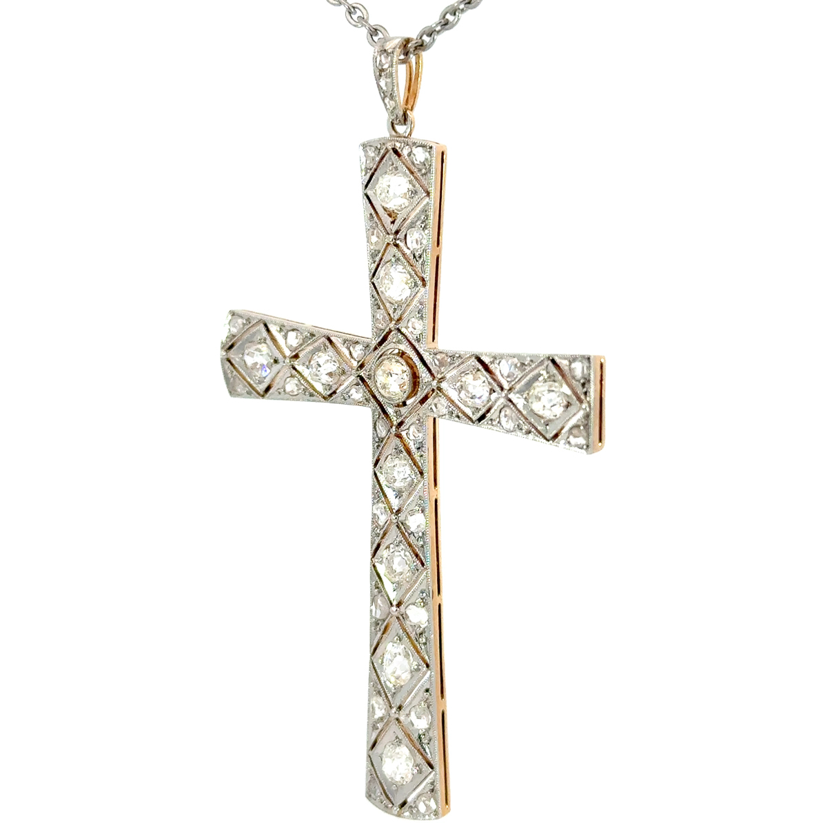 Großes Art Deco Diamantkreuz 18 Karat Gold mit Platin um 1920