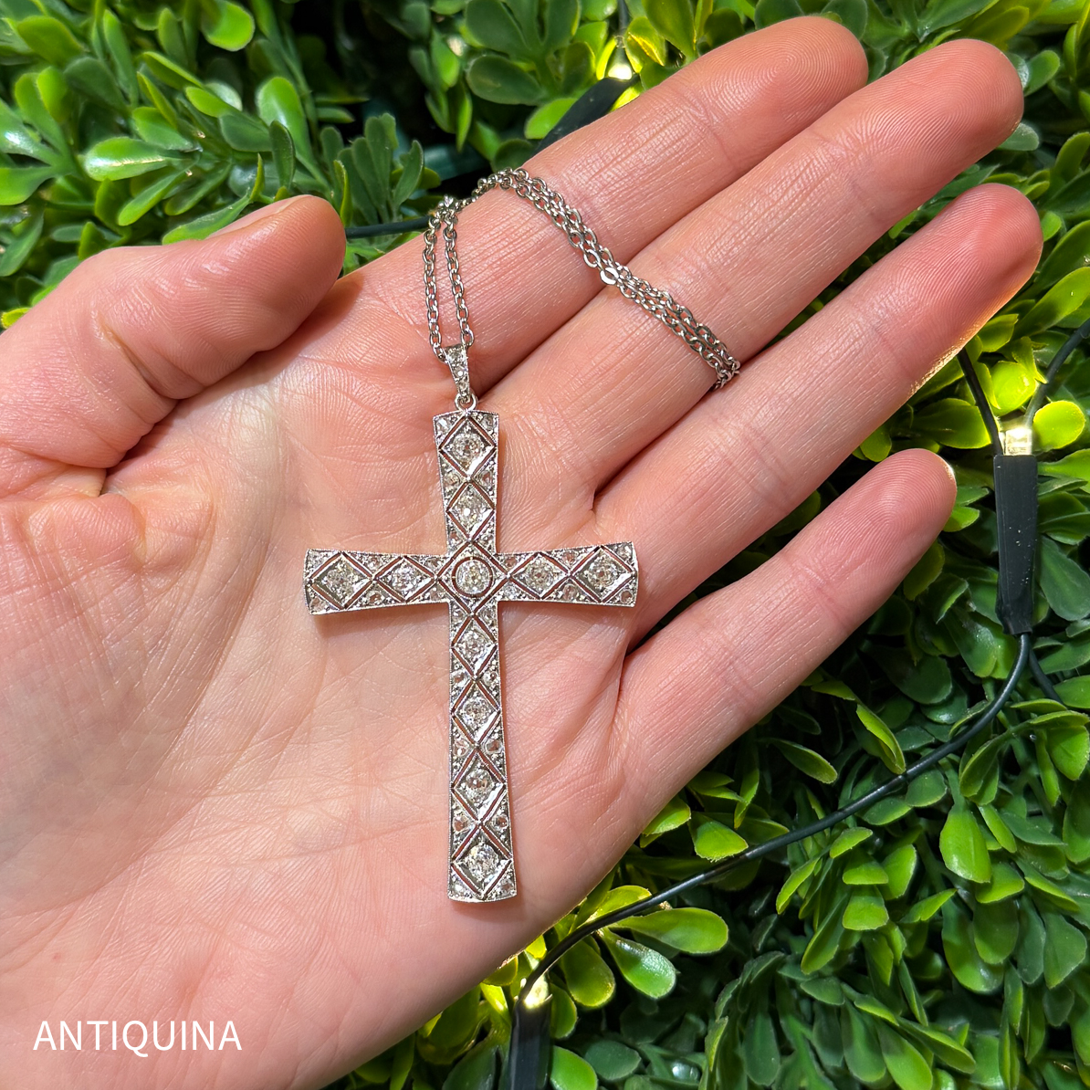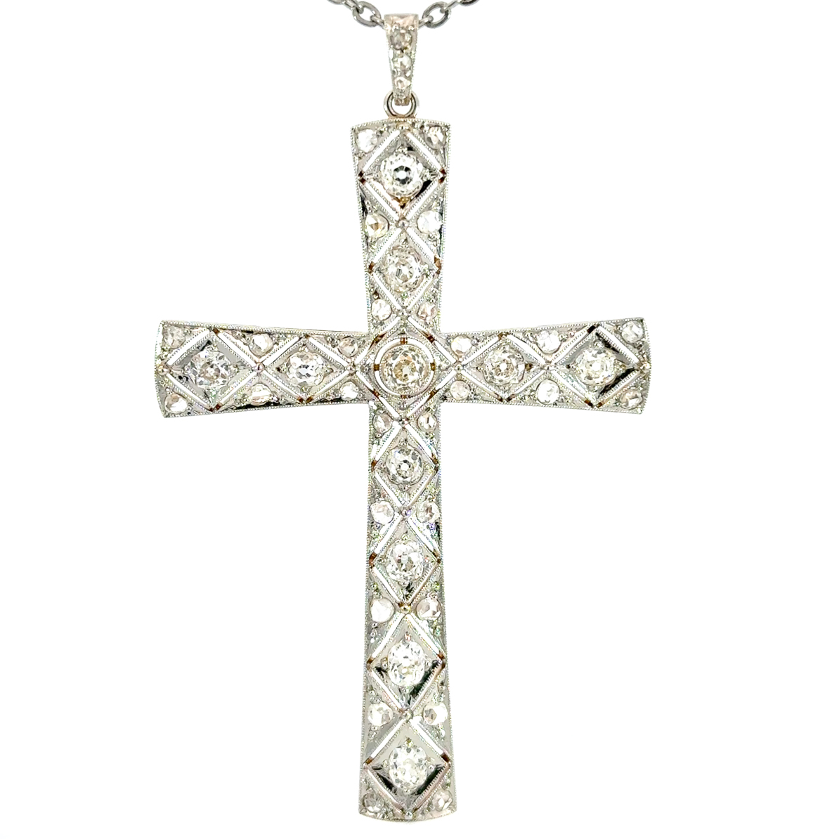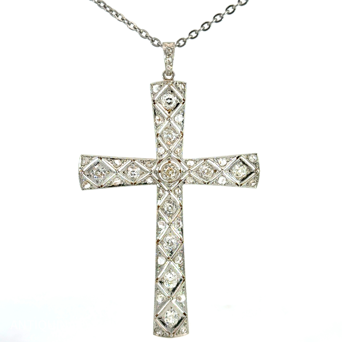 Großes Art Deco Diamantkreuz 18 Karat Gold mit Platin um 1920