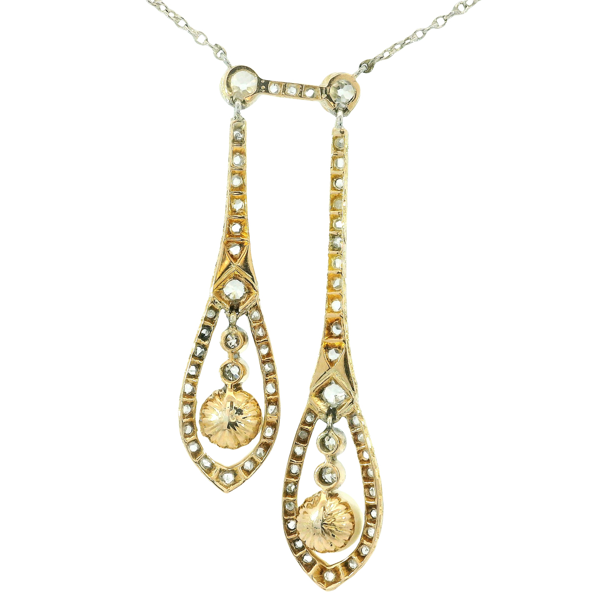 Wunderschönes, elegantes und antikes Collier, Art Deco, Mittelteil gearbeitet in 750 Gelbgold mit Platin,