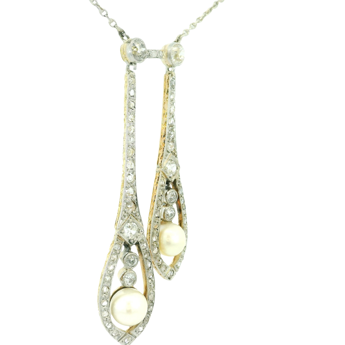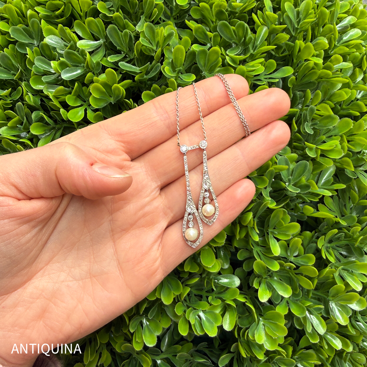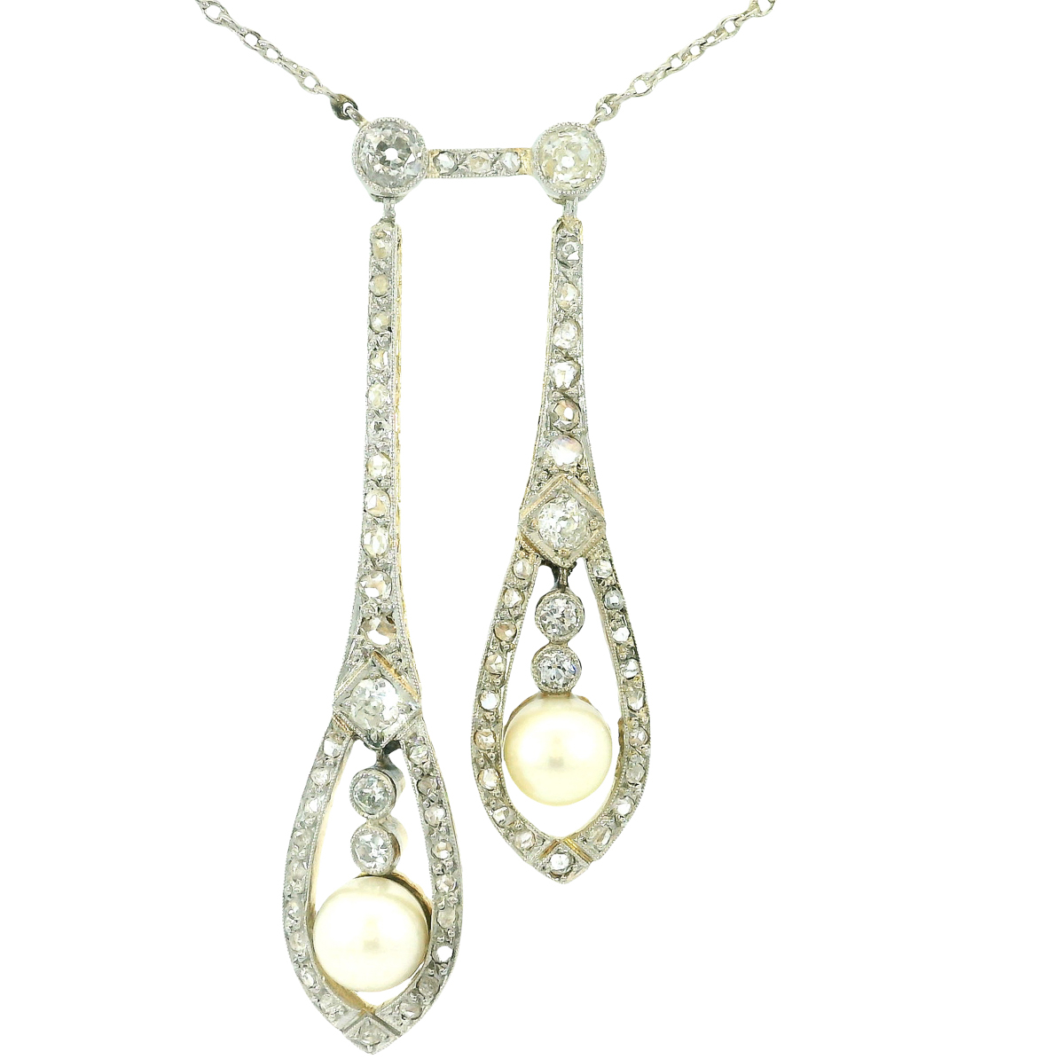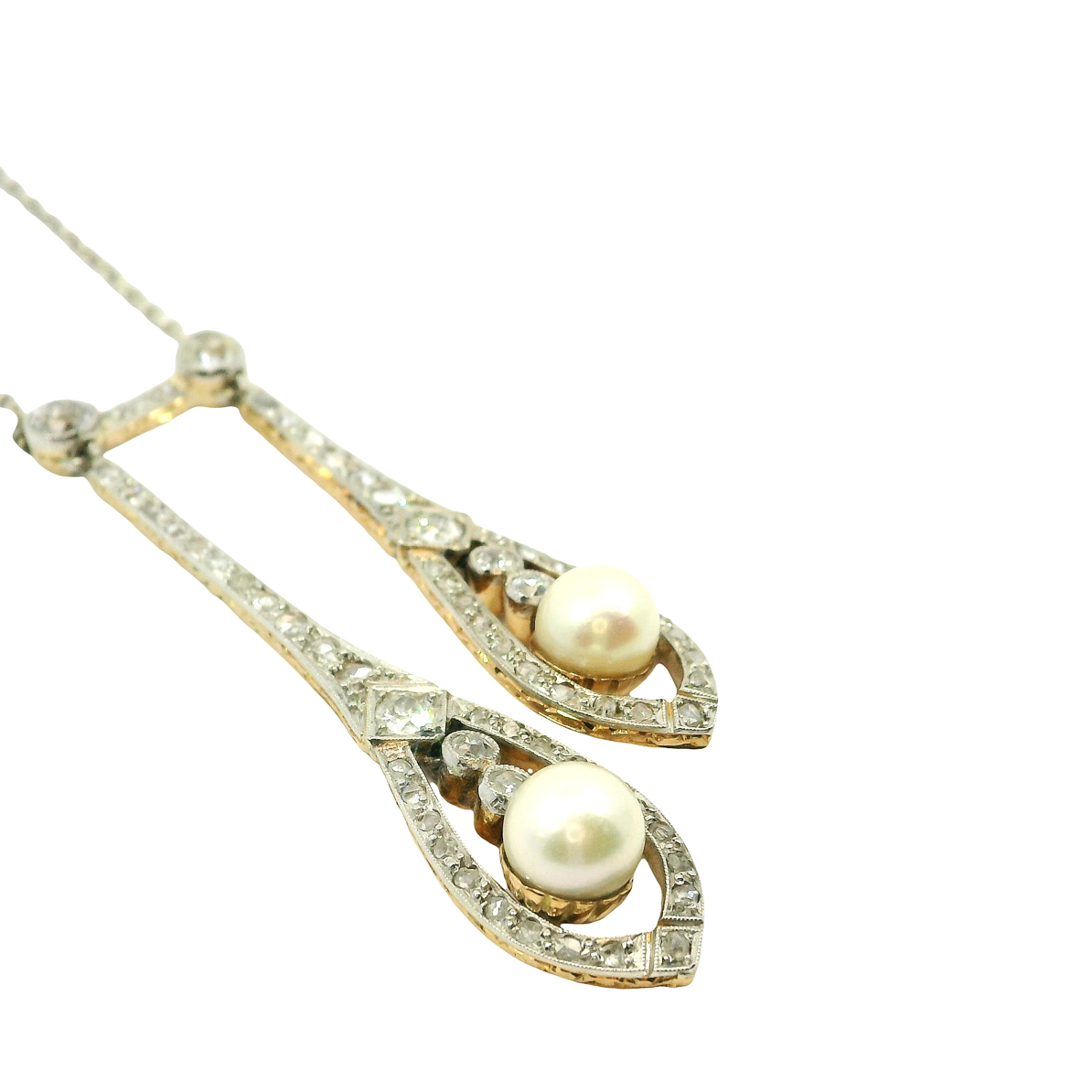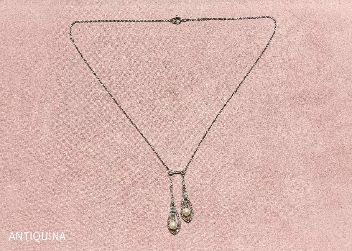 antikes Art Deco Collier mit Diamanten und Perlen um 1915