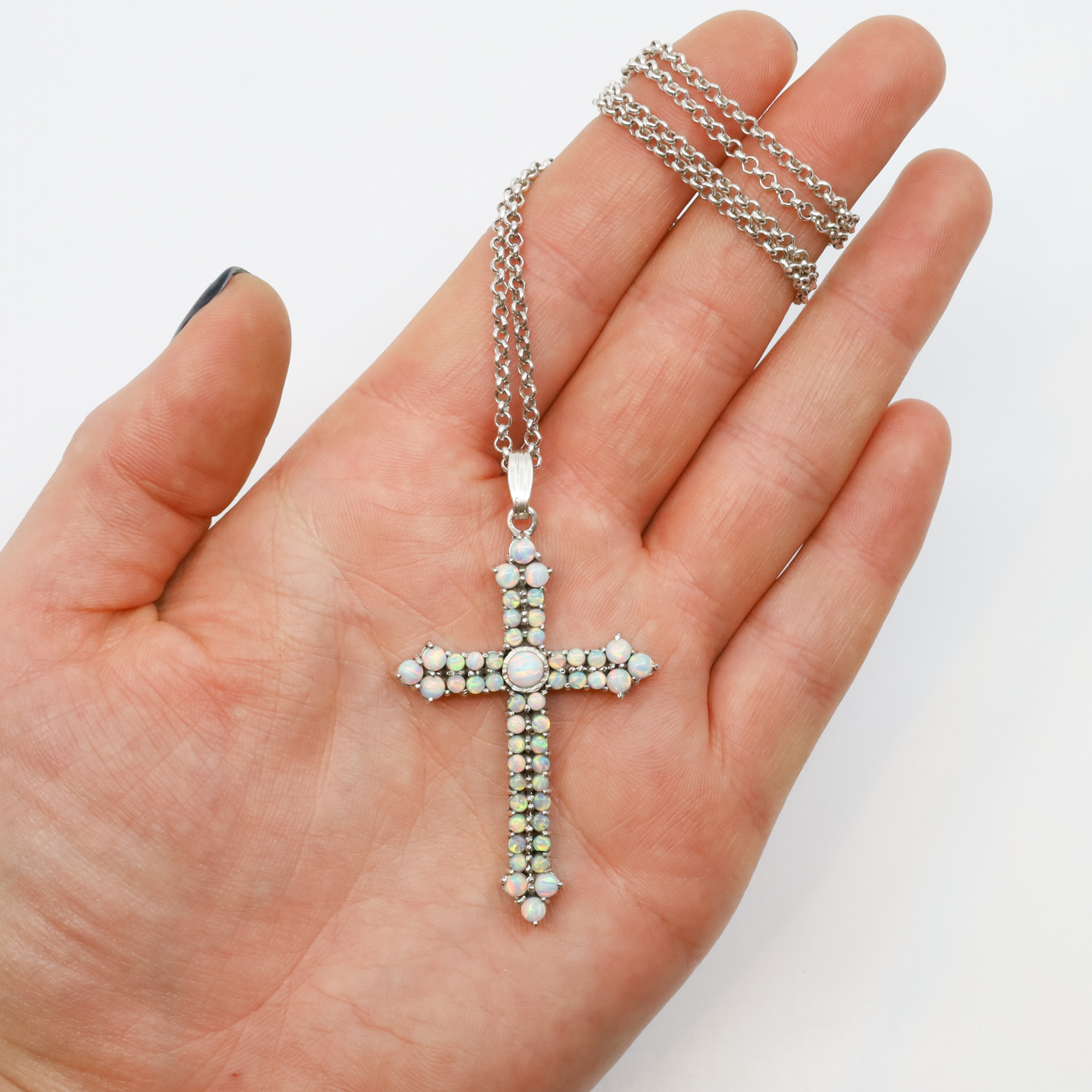 Material: Kreuz Silber, Kette Silber, Opale im Cabochonschliff