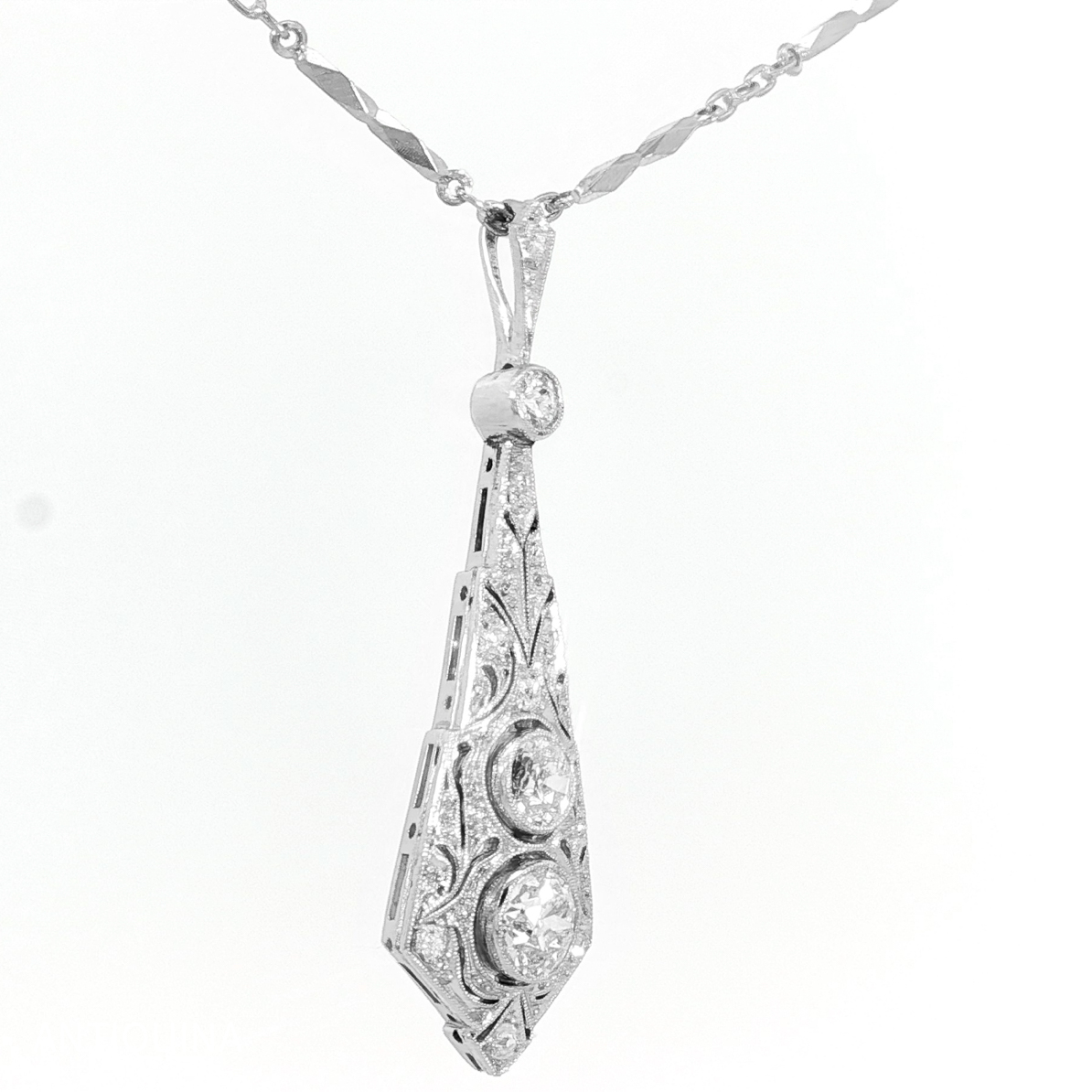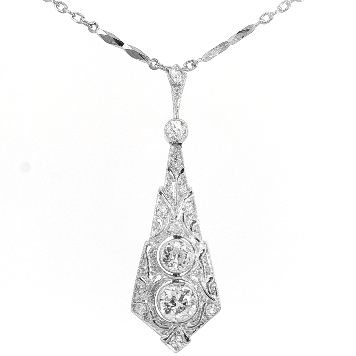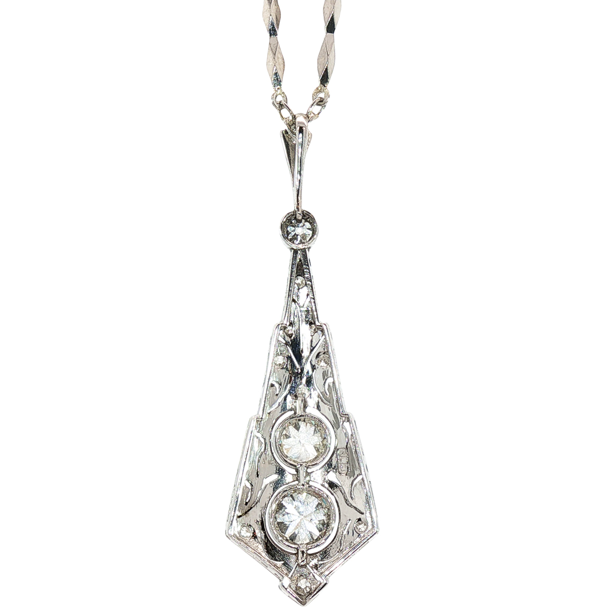 Antiker Art-Déco-Anhänger aus 18 Karat Weißgold mit Diamanten und Platin-Kette um 1920:
