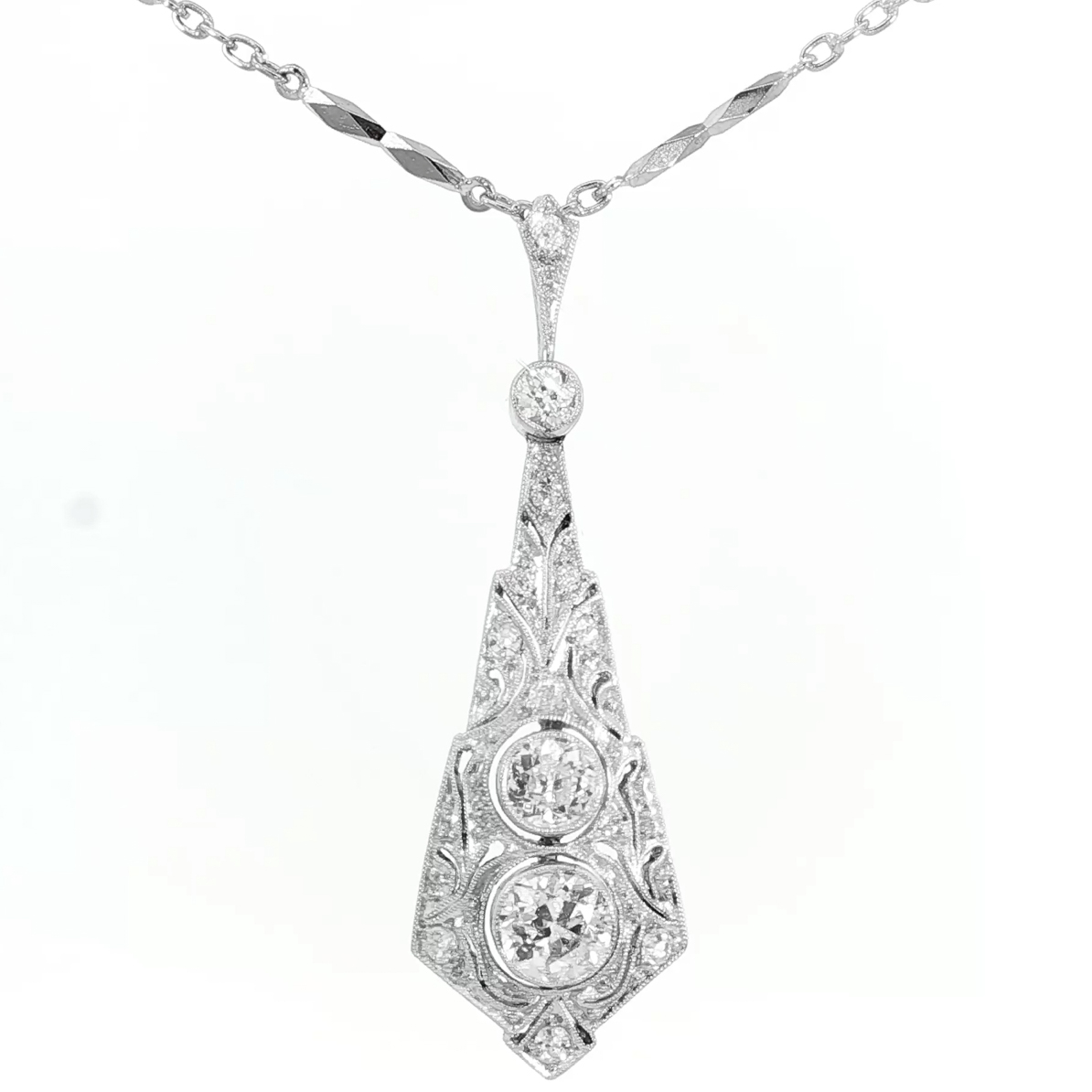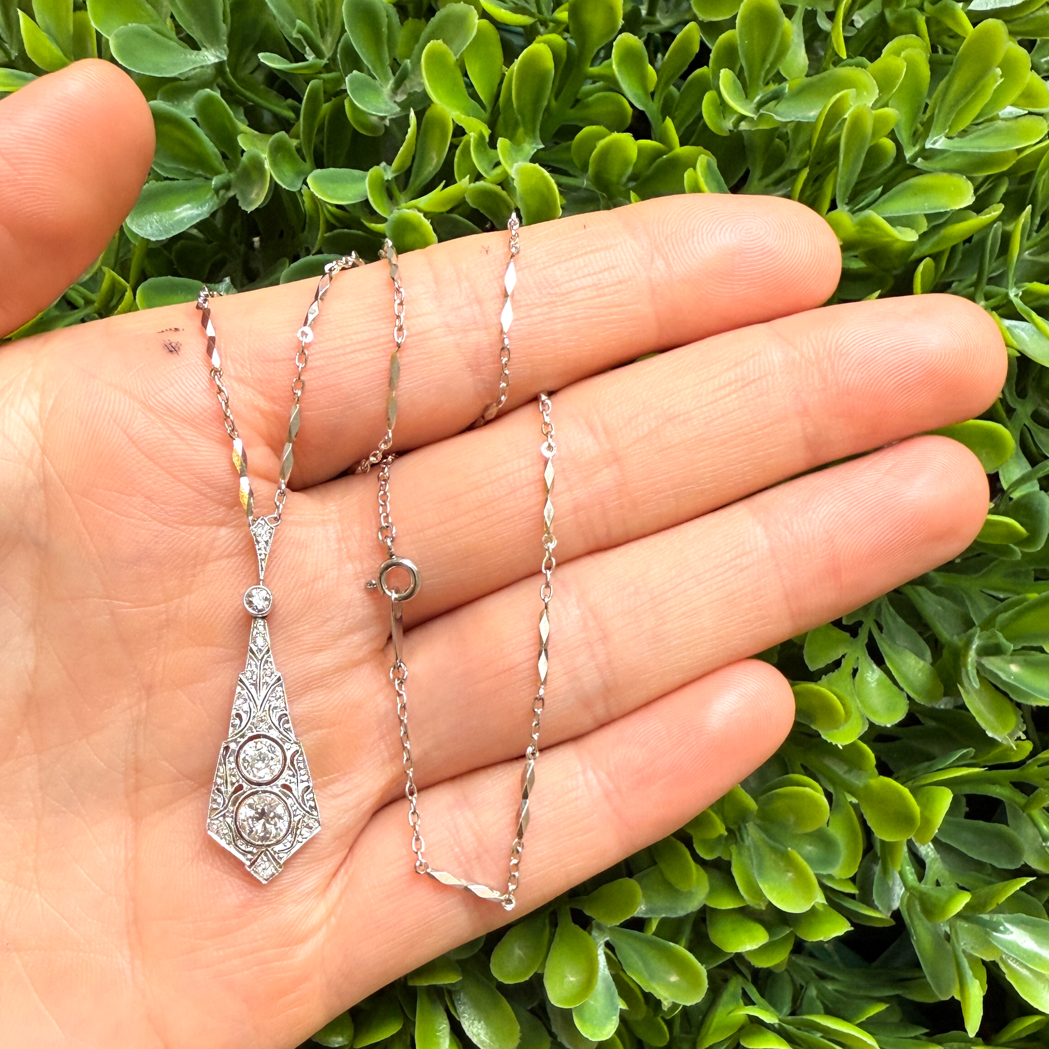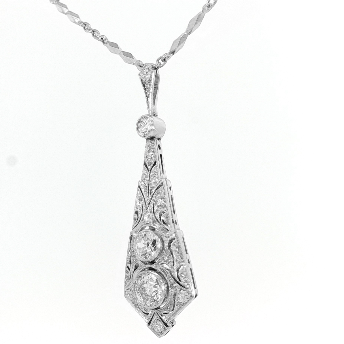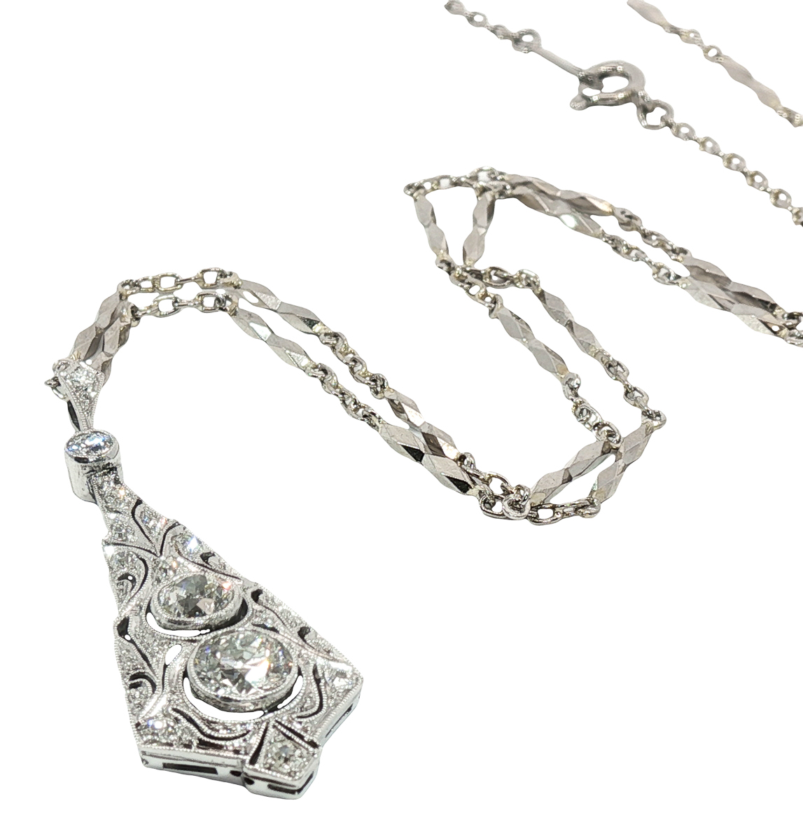 Antiker Art-Déco-Anhänger aus 18 Karat Weißgold mit Diamanten und Platin-Kette um 1920: