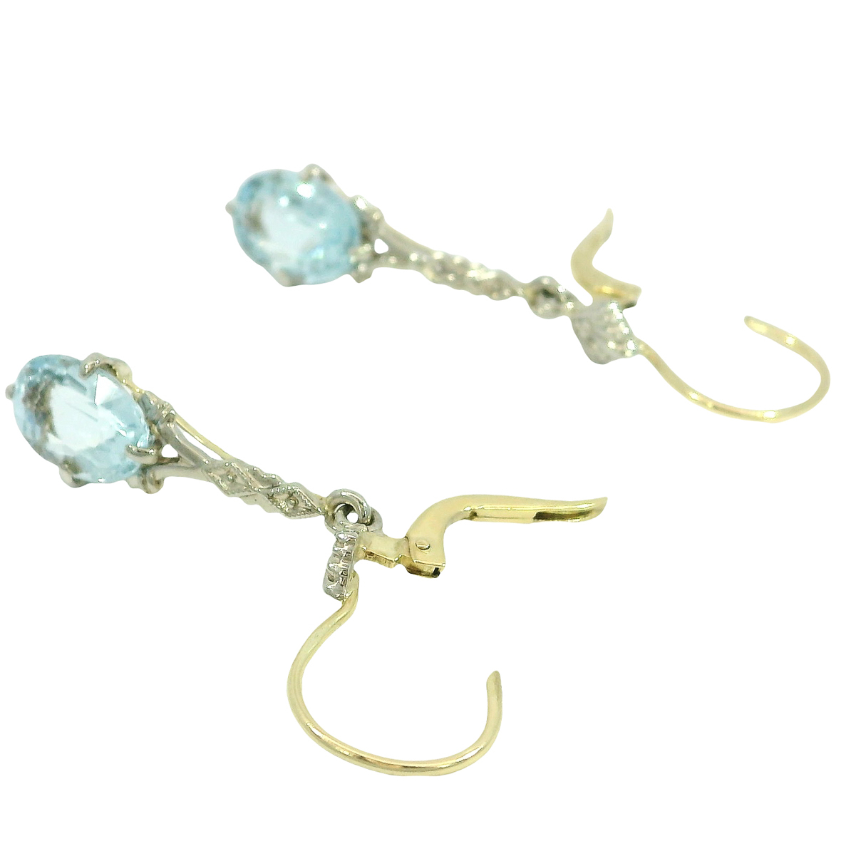 Jedes Ohrgehänge endet in einem leuchtenden Aquamarin im ovalen Facettenschliff,