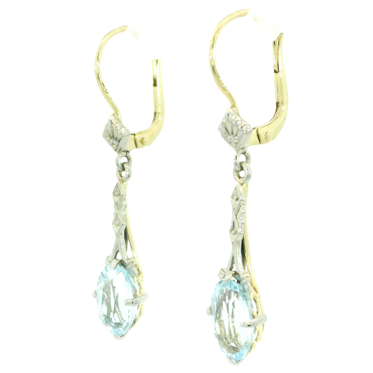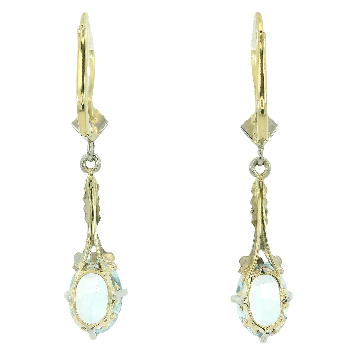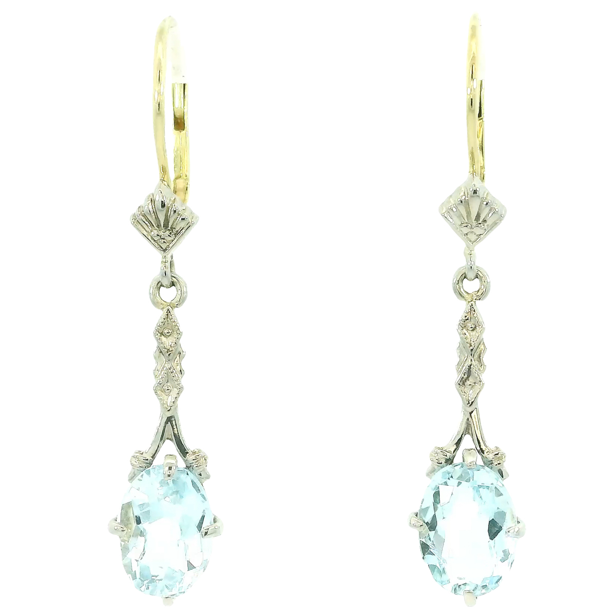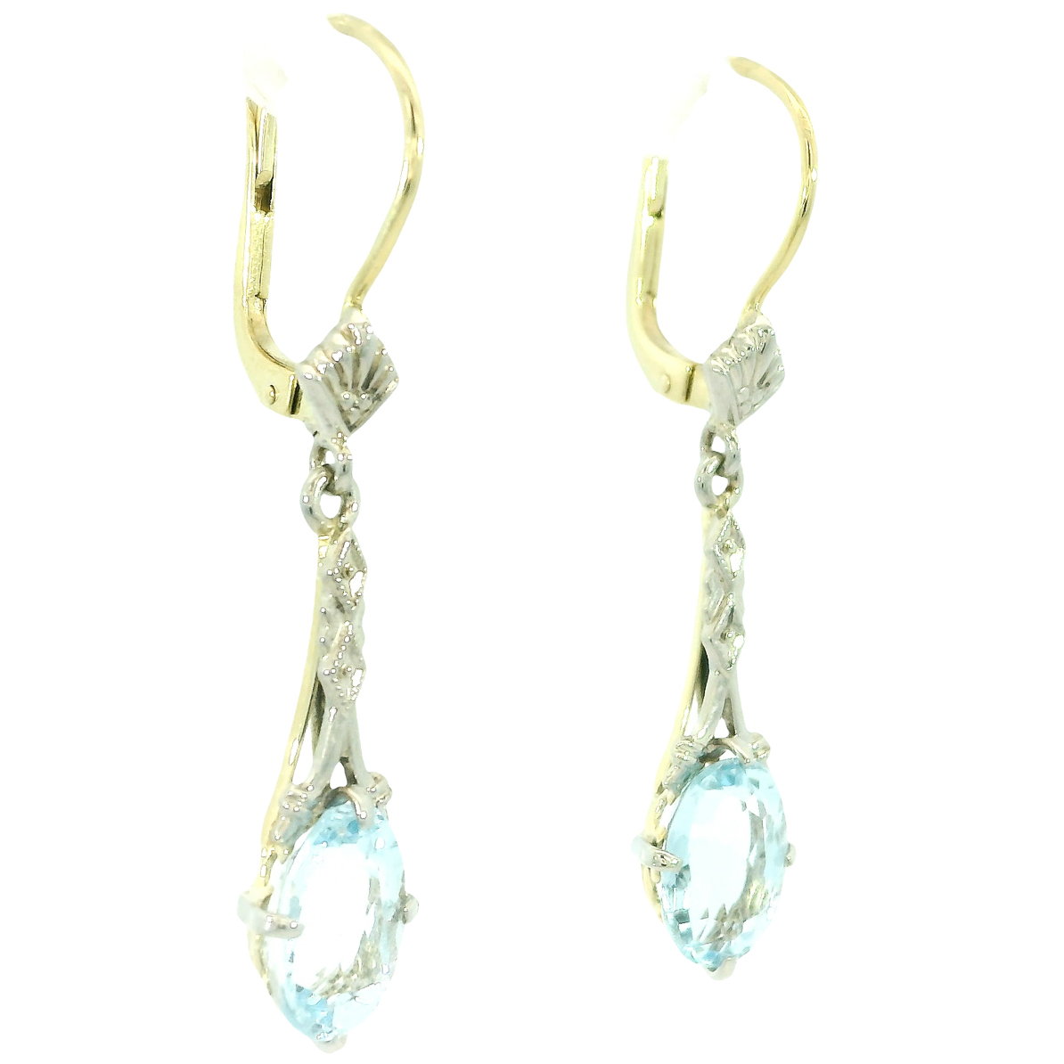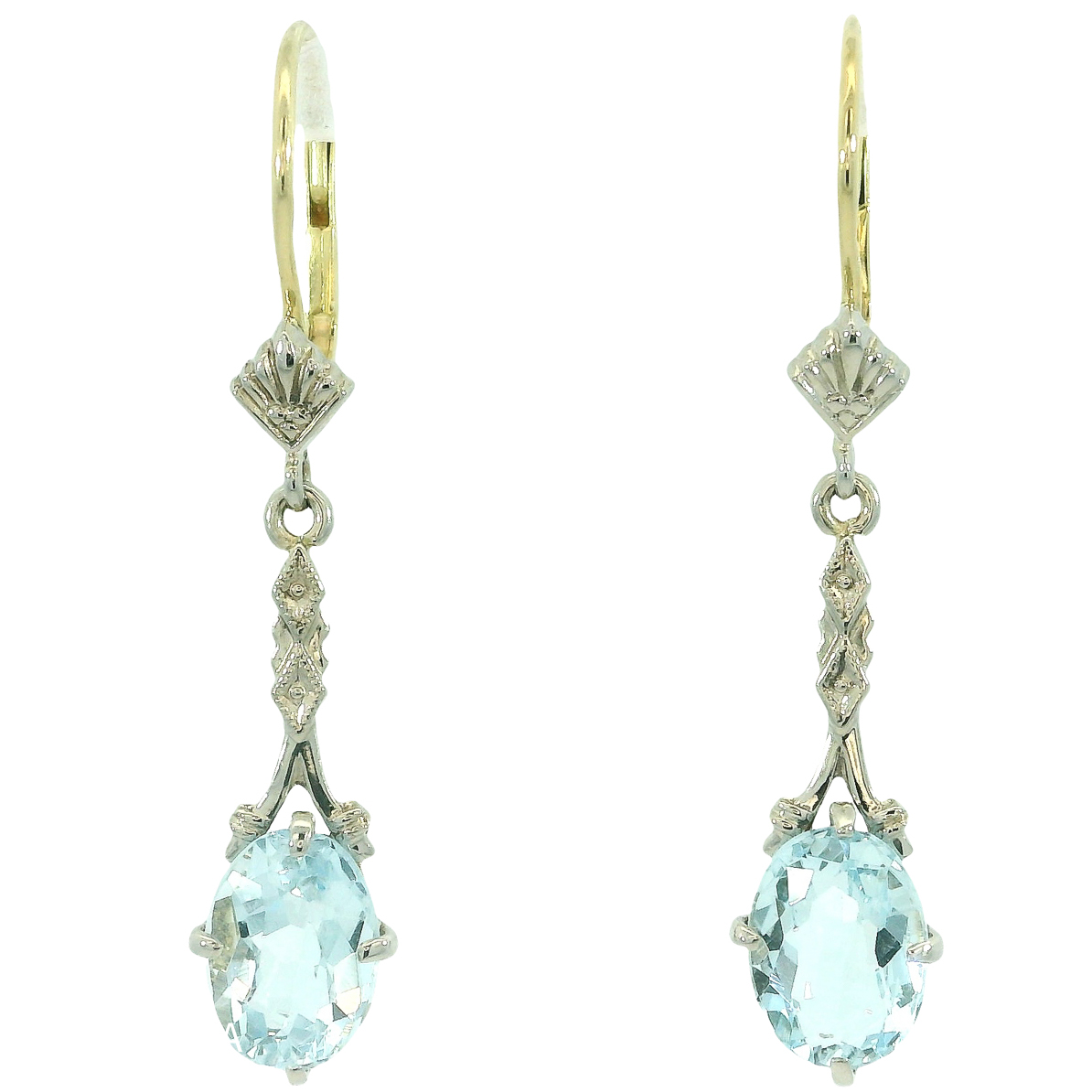 Feine antike Art Déco Ohrringe mit Aquamarinen in 14 Karat Gold und Platin um 1920: