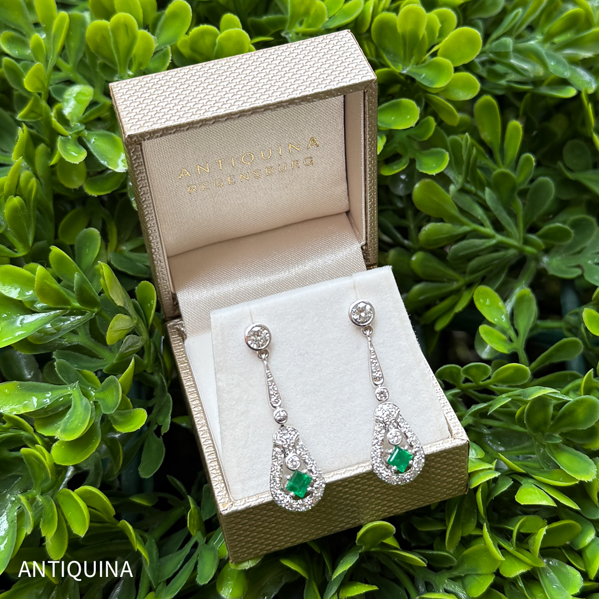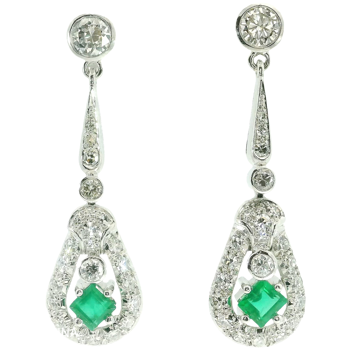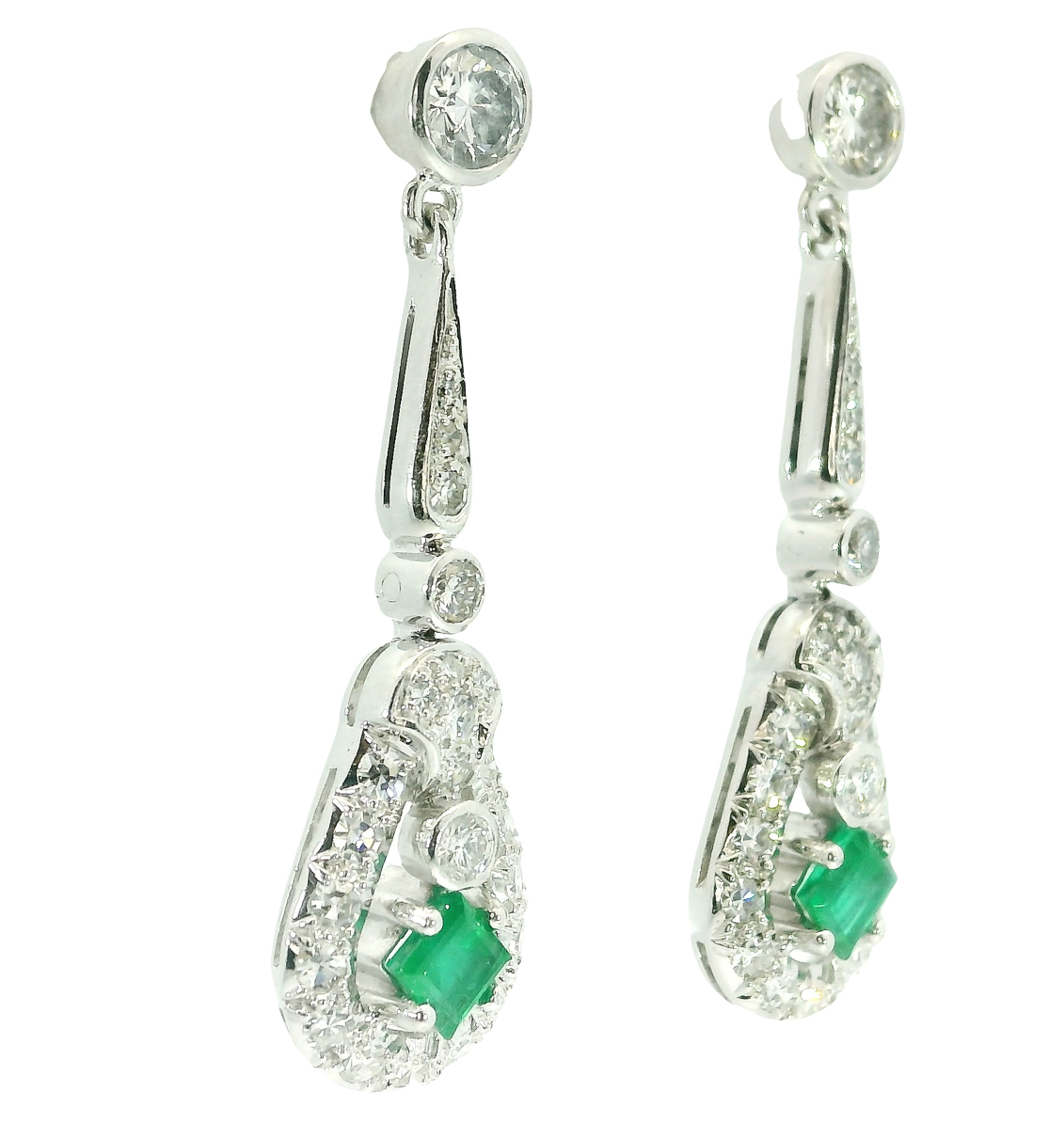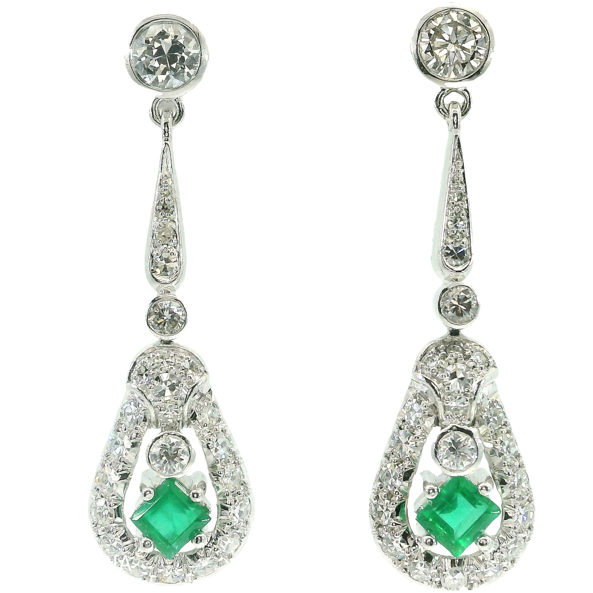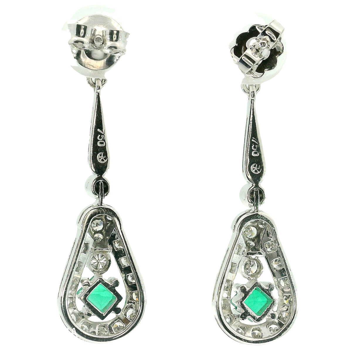 Antike Ohrringe Art Deco um 1930 18 Karat Weißgold Diamanten Smaragd