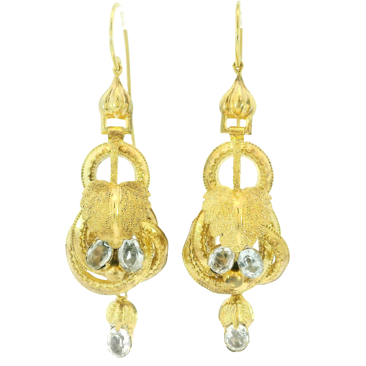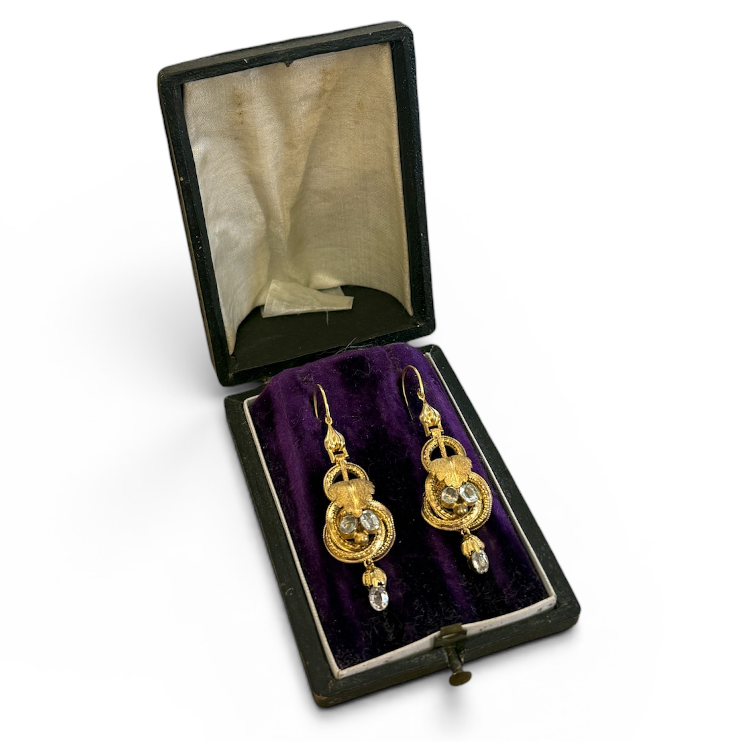 Die antiken Ohrringe befinden sich in einem sehr guter Erhaltungszustandmit geringfügigen altersbedingten Gebrauchsspuren.