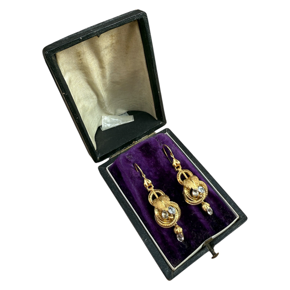 Seltene, wunderschöne und antike Ohrringe im original Etui, frühes Biedermeier um 1820,