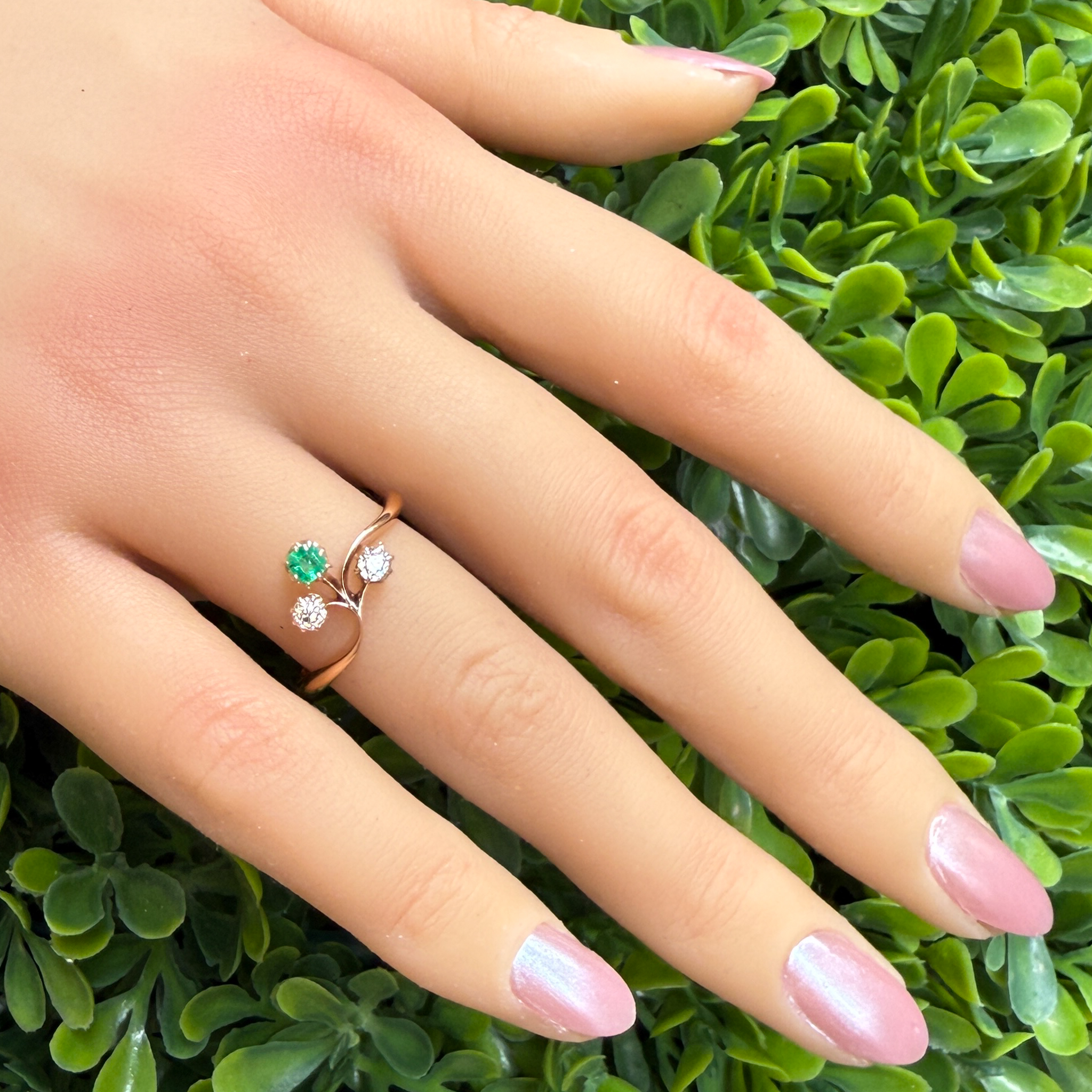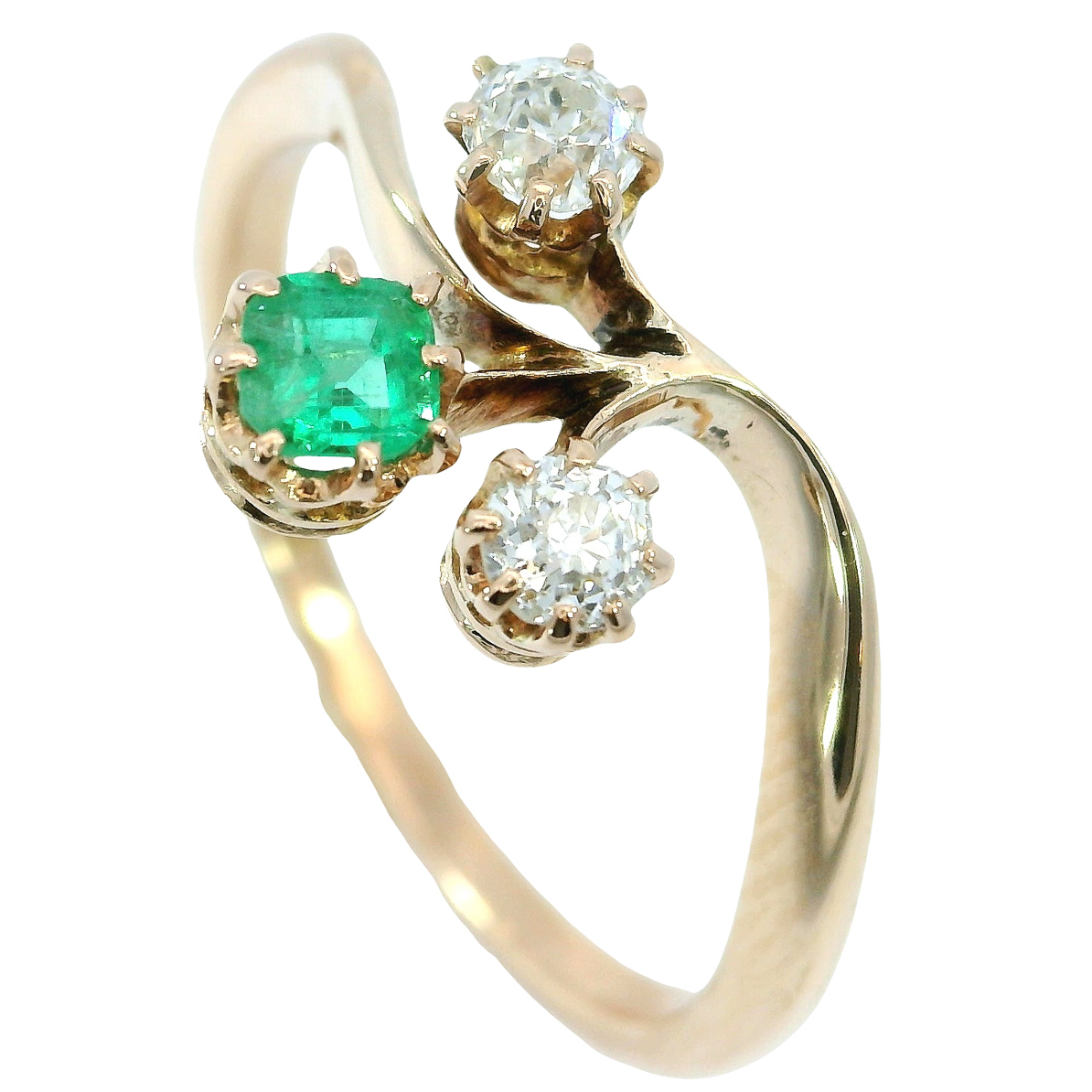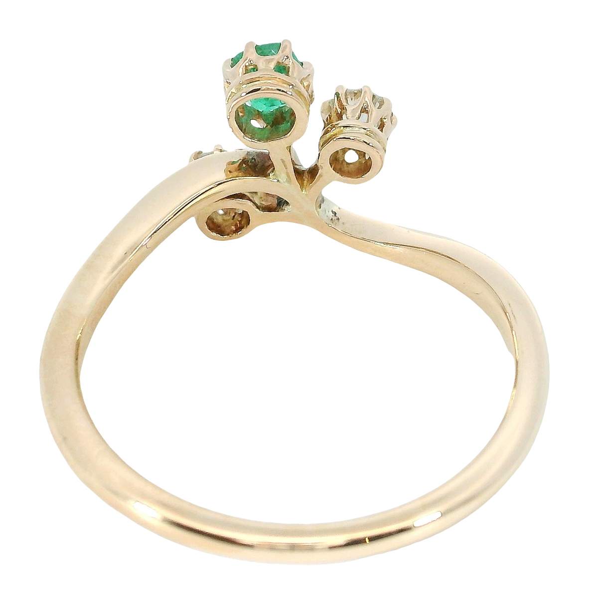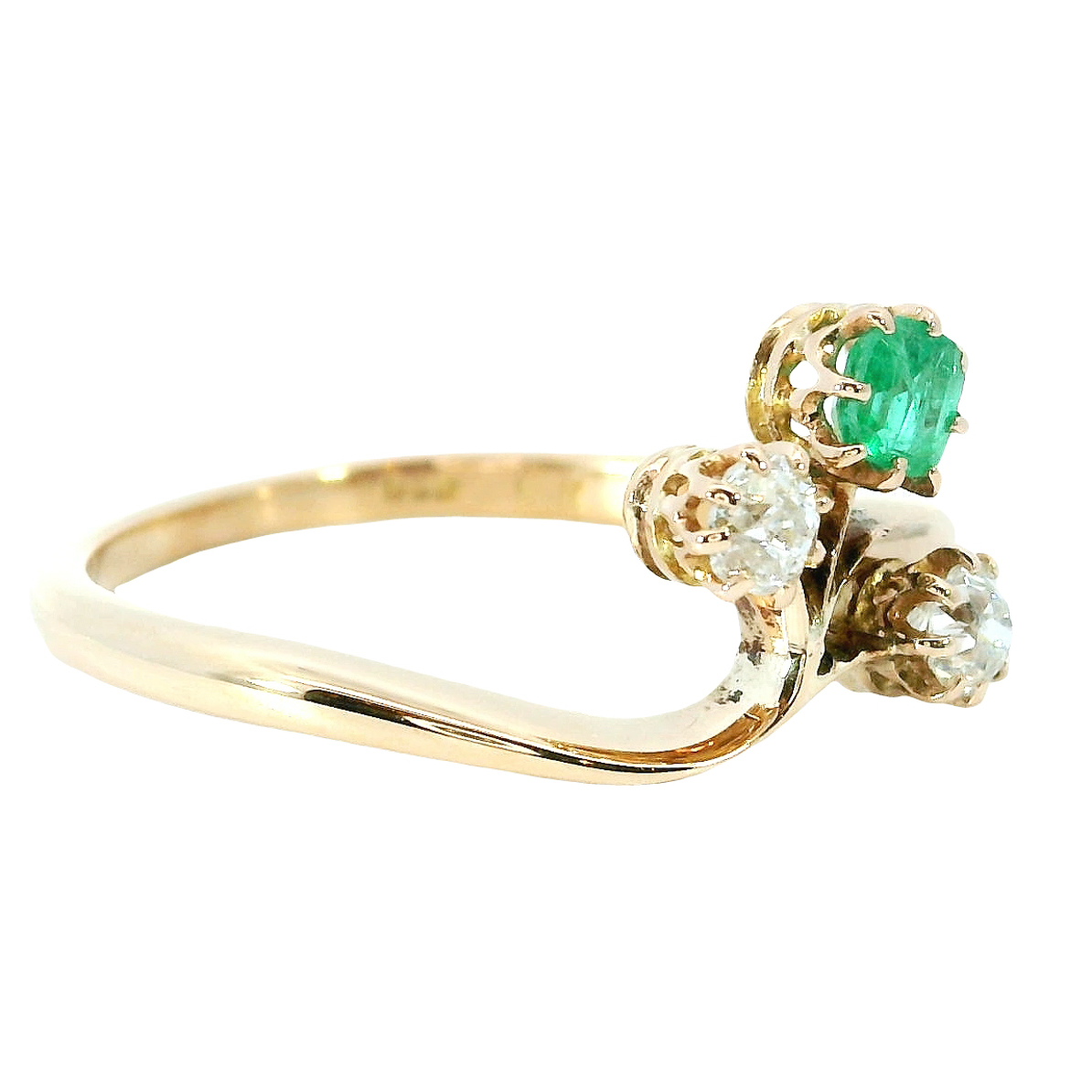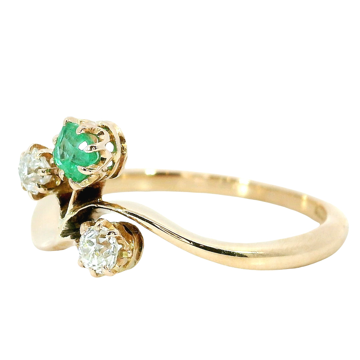 Antiker Jugendstil-Ring aus 585 Gold mit Smaragd und Diamanten um 1900: