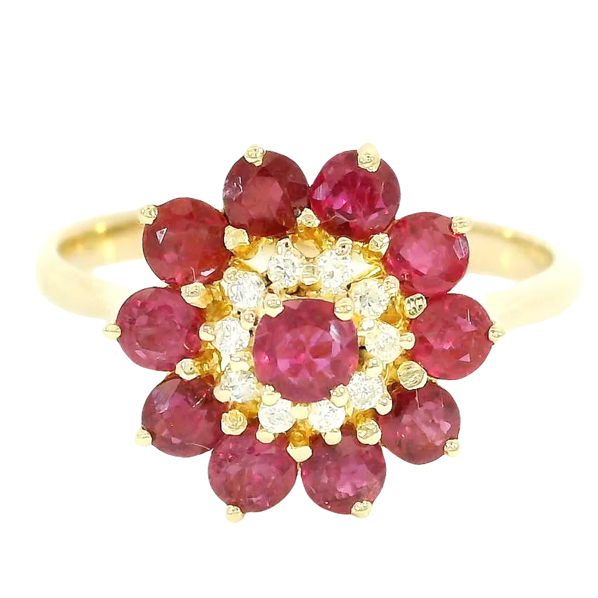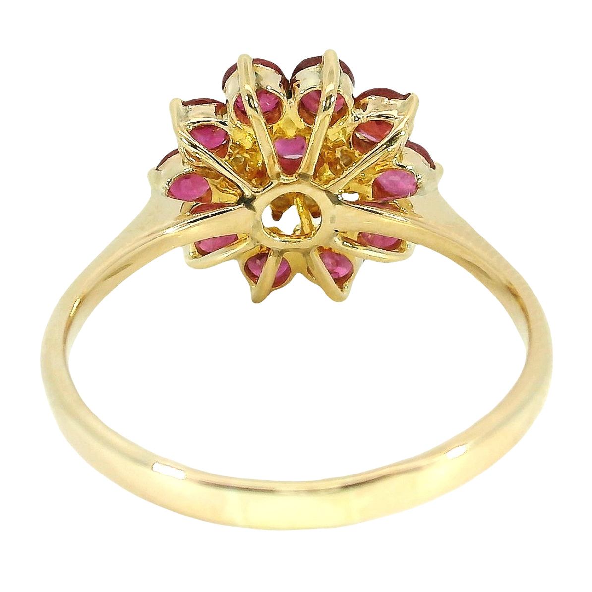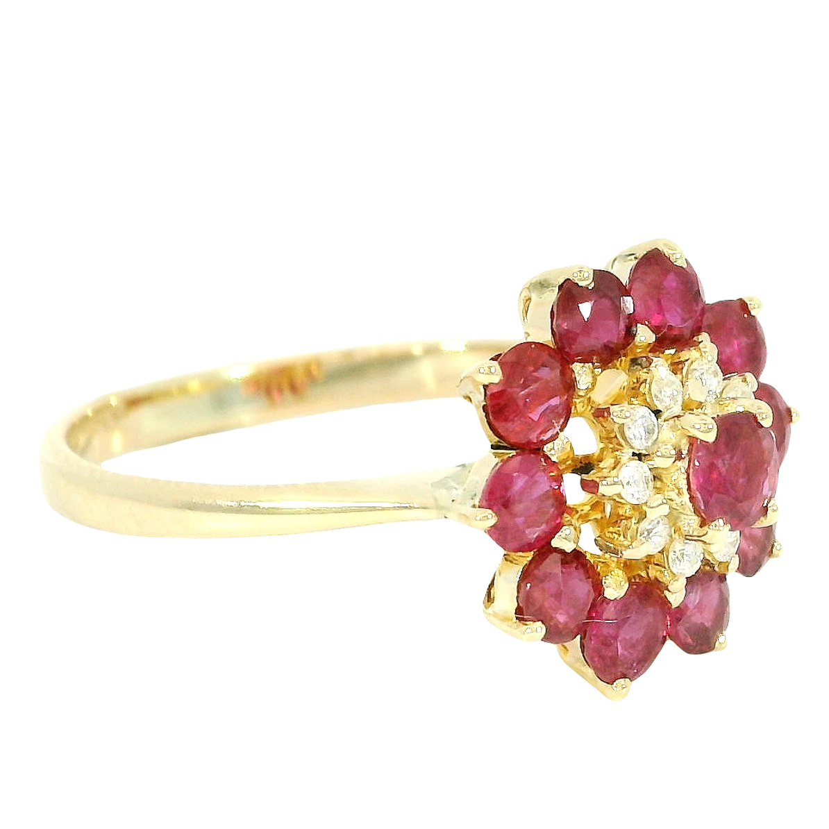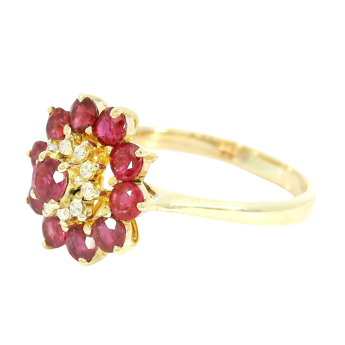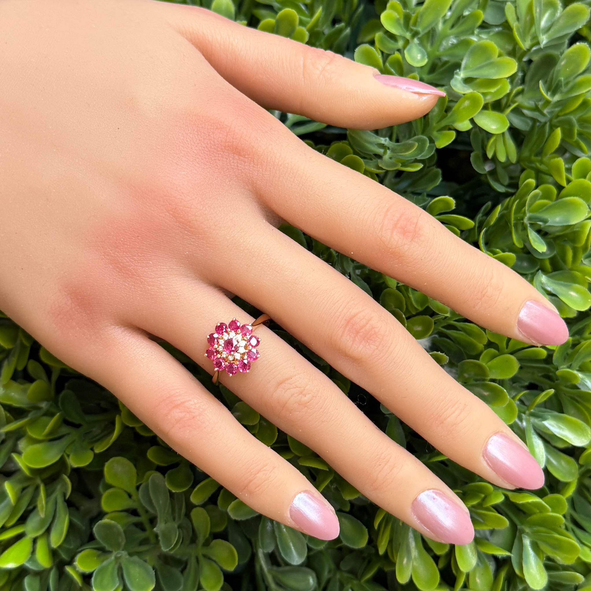 Vintage-Ring „Flower Power“ aus 585 Gold mit Rubinen und Diamanten: