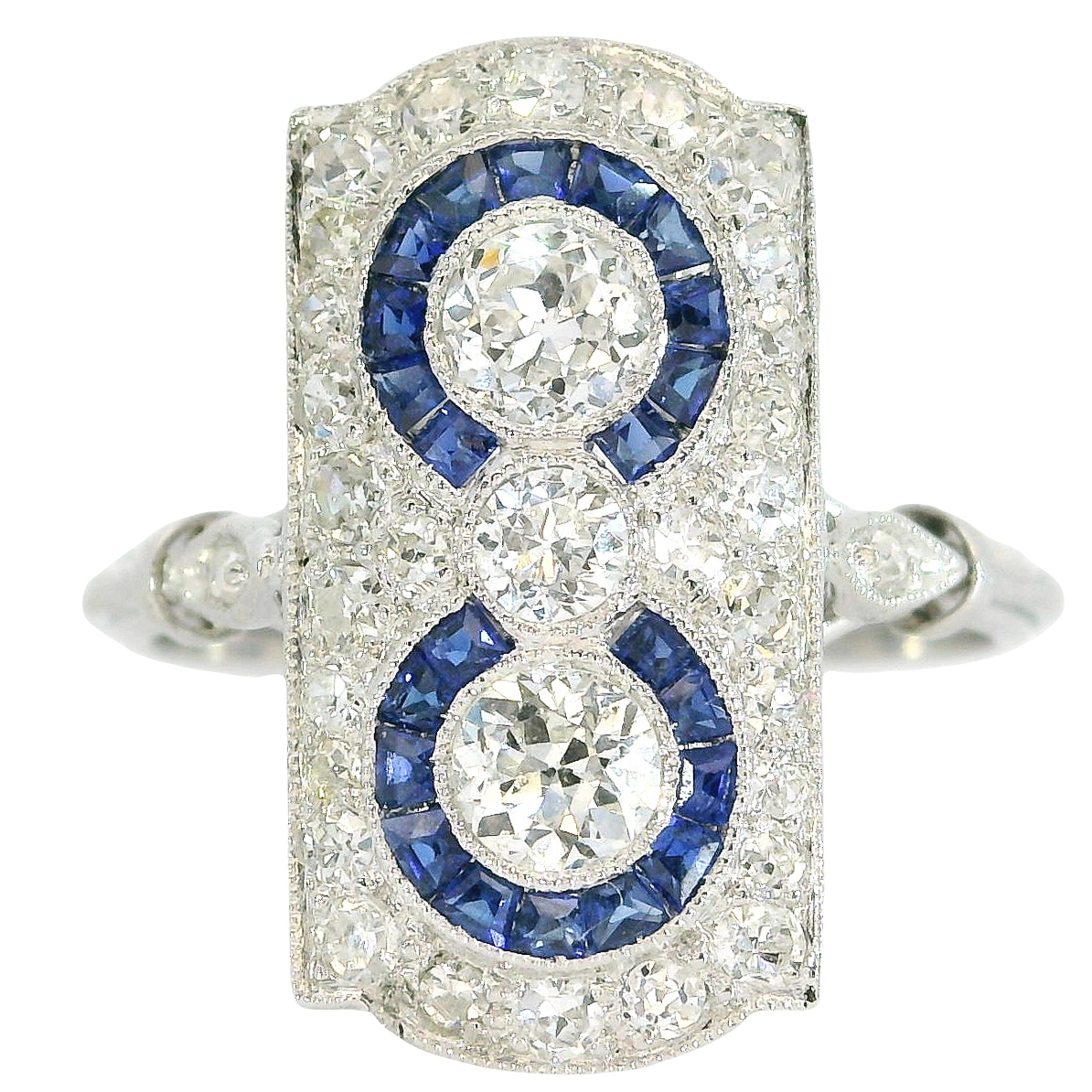 Seltener, wunderschöner und antiker Art Deco Ring, gearbeitet in Platin,