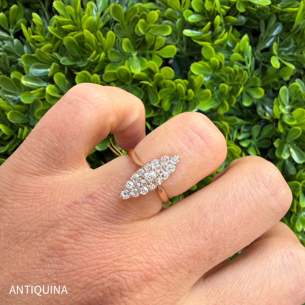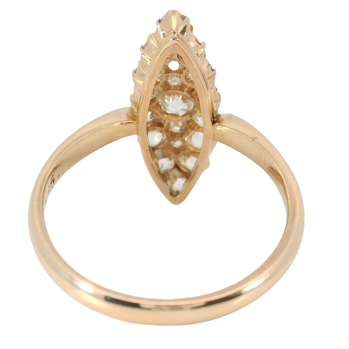 Antiker Schiffchenring um 1910 in 585 Roségold im Diamantgarten