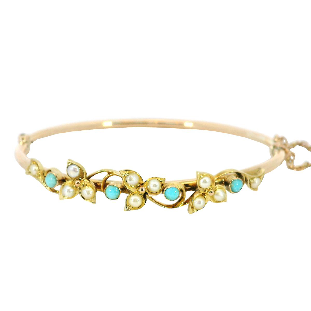 Antiker Armreif 14 Karat Gold Türkise Perle um 1890
