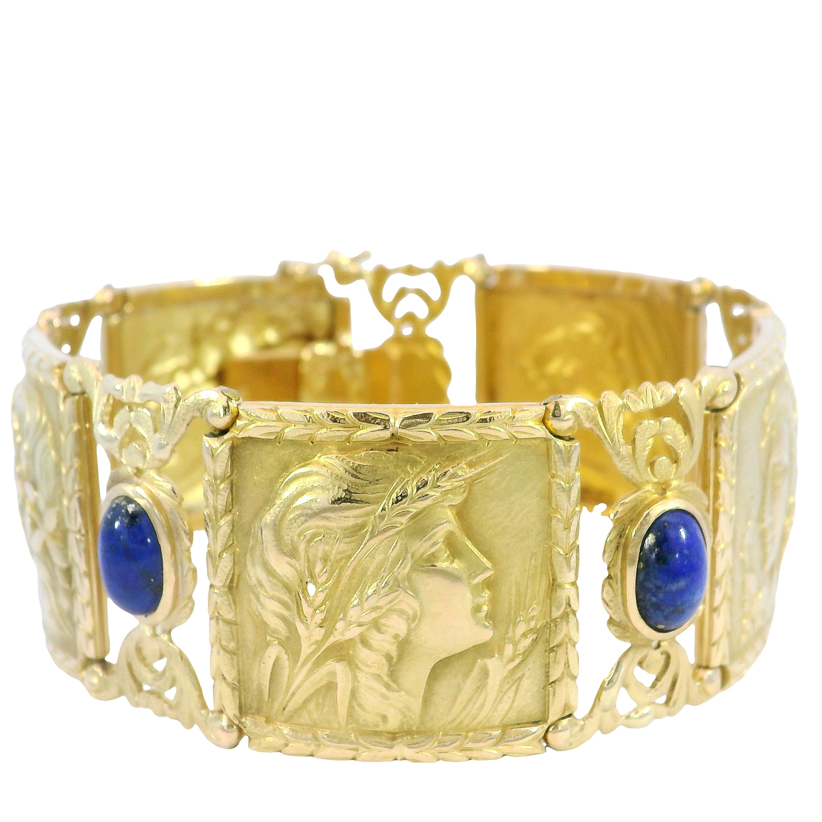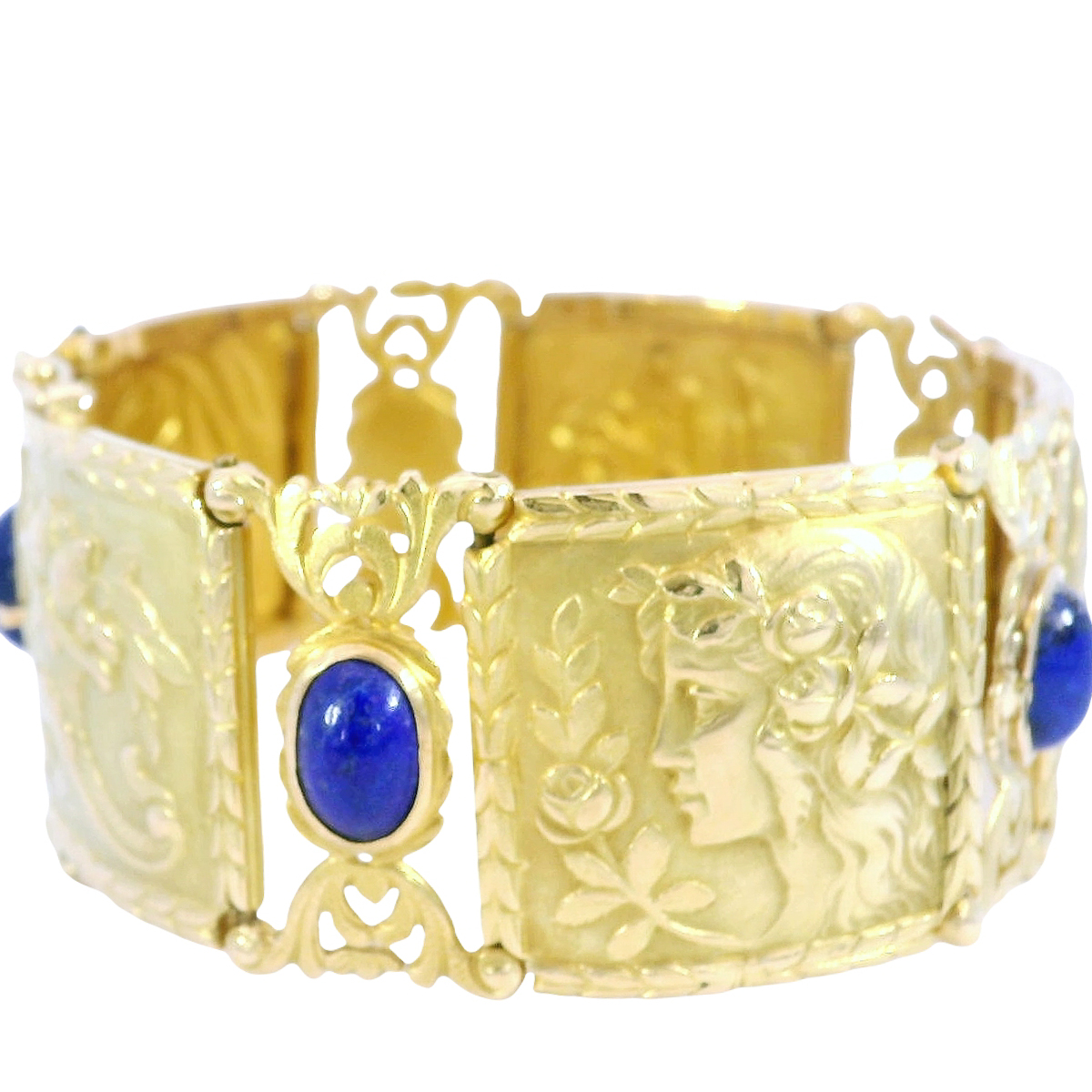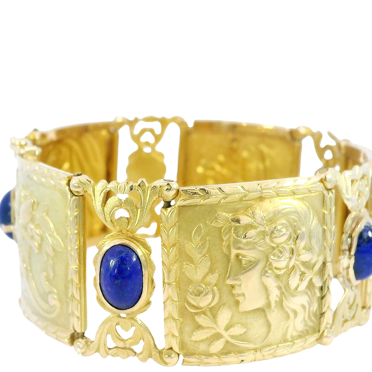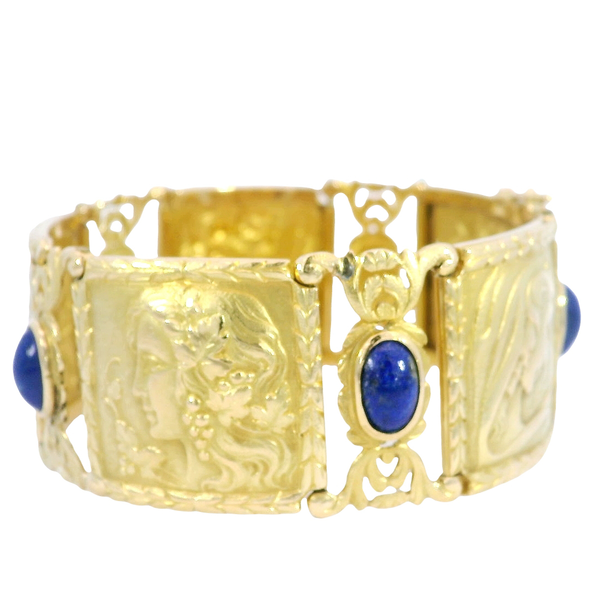 Antikes Armband in 750 Gelblgold mit Lapislazuli, Klassizismus/Jugendstil, um 1890–1900: