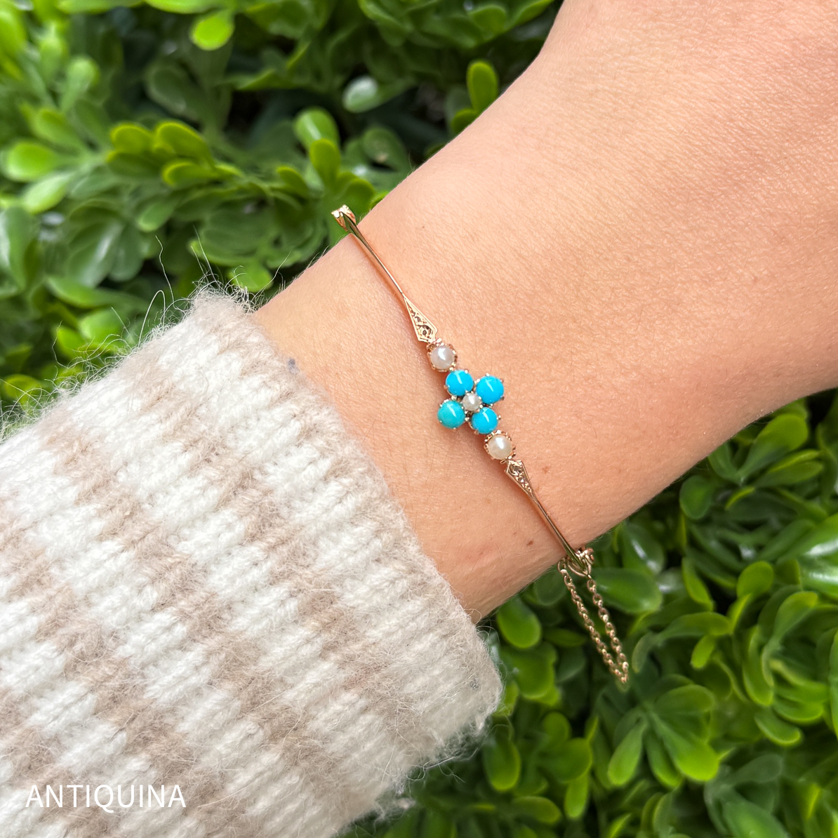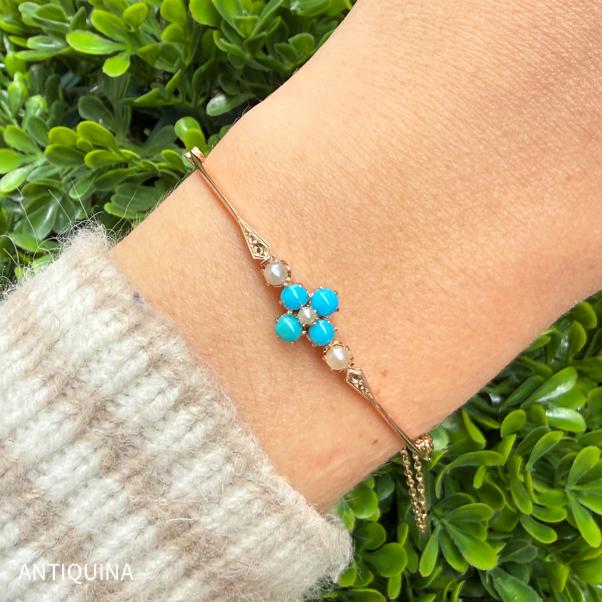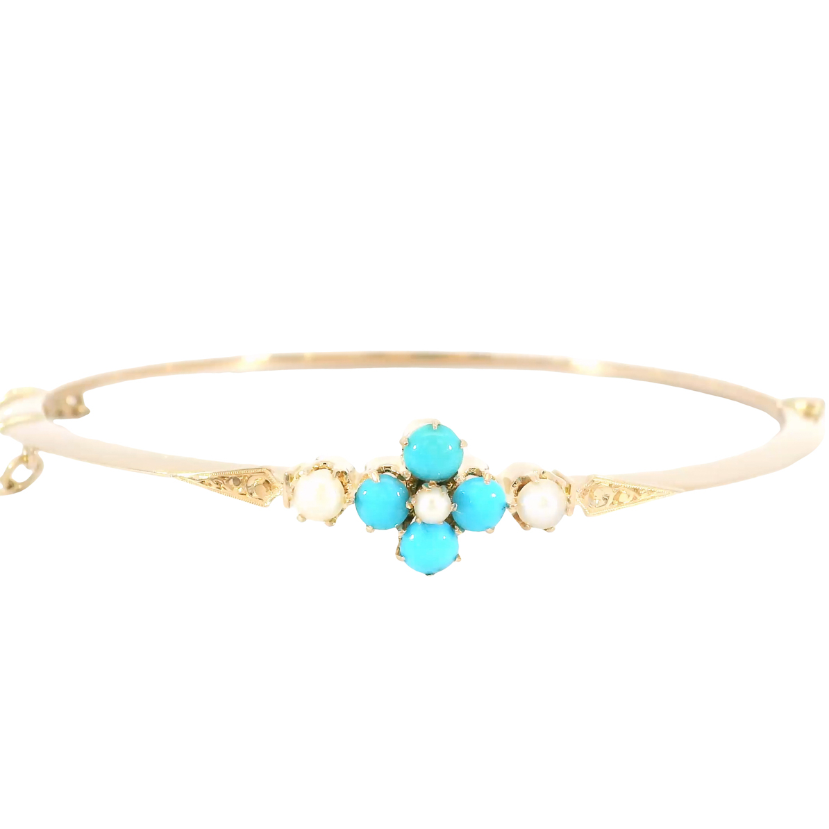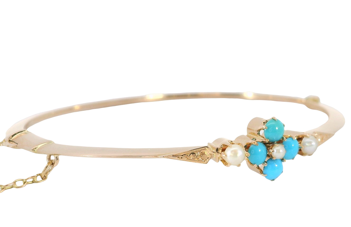 Antiker viktorianischer Armreif um 1890 585 Gold Türkise Saatperle n