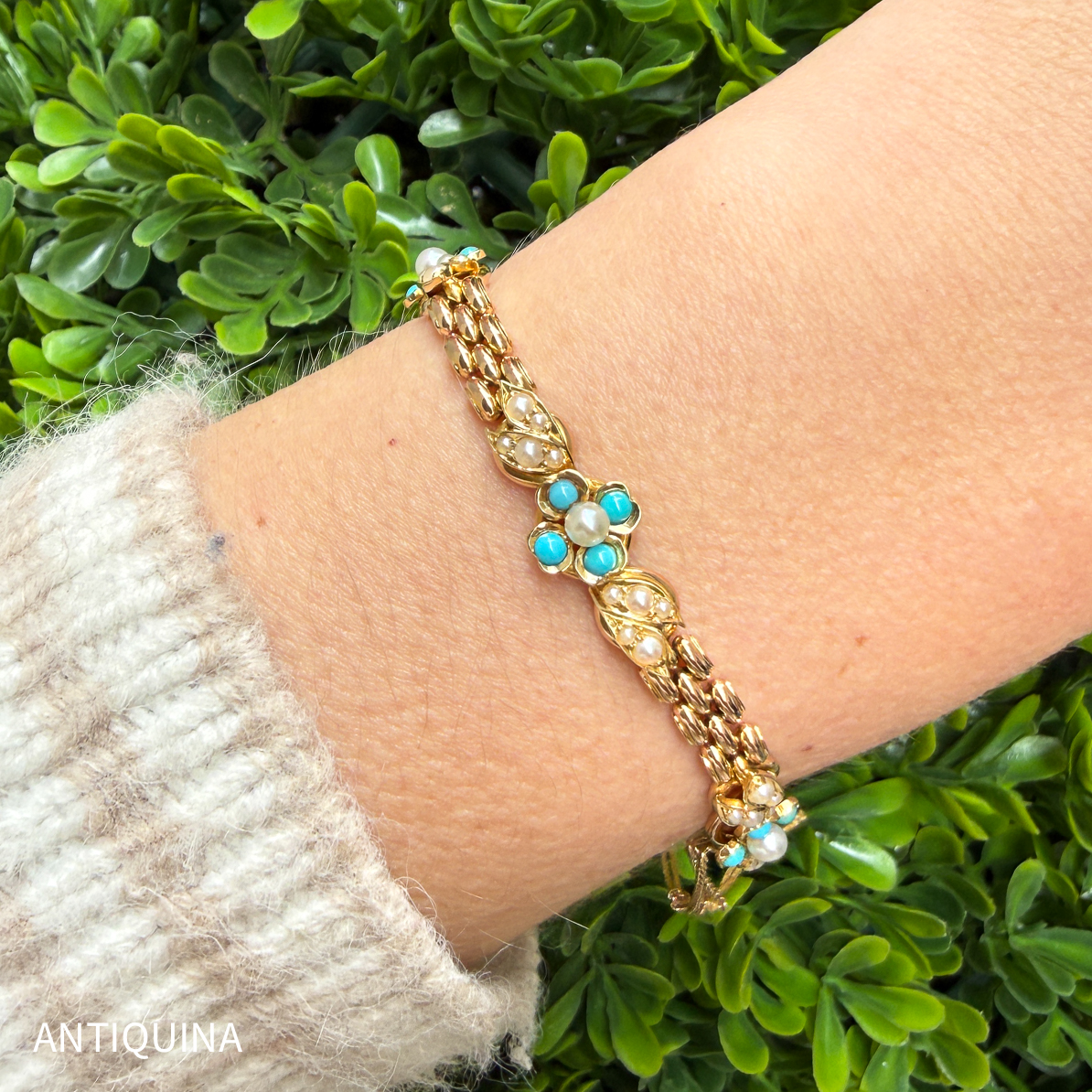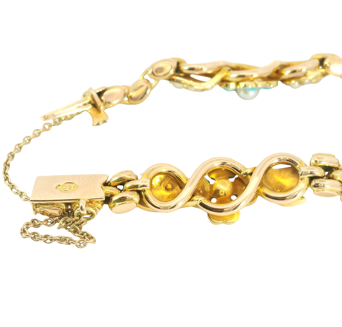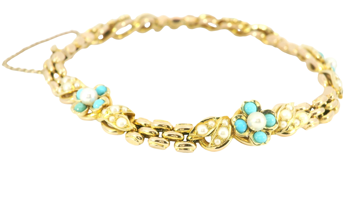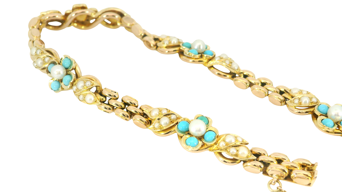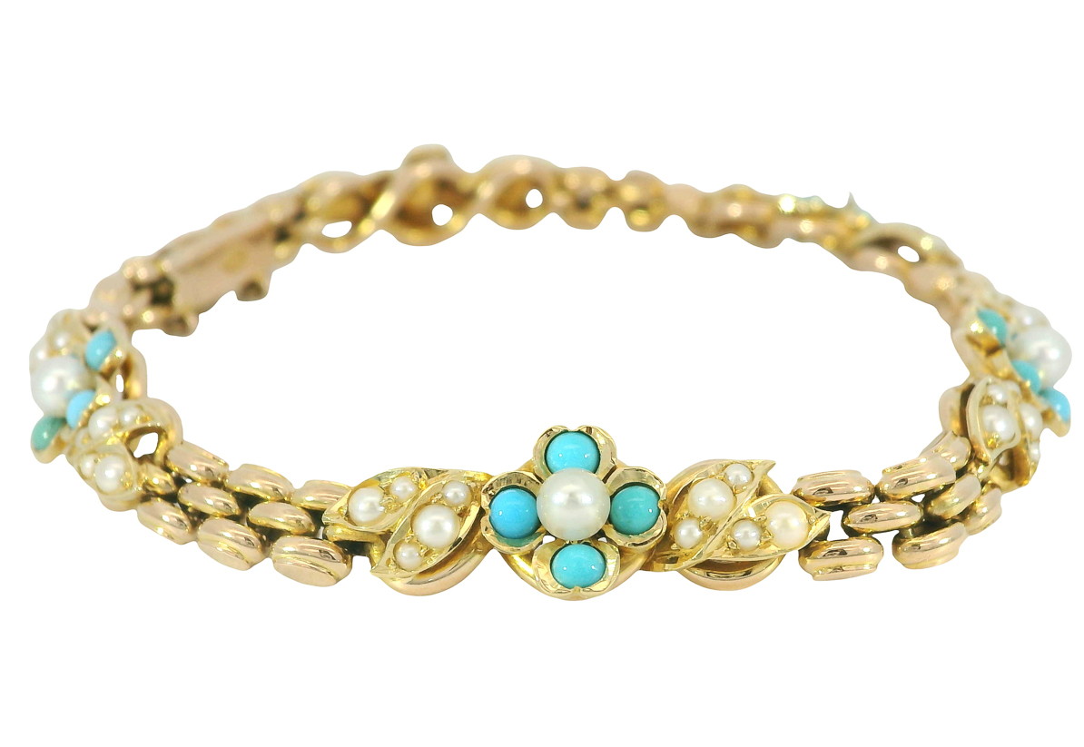 Material: 15 Karat Gold, Türkise, Saatperlchen