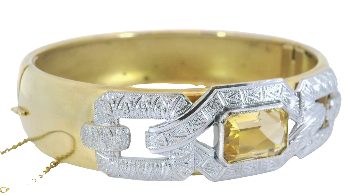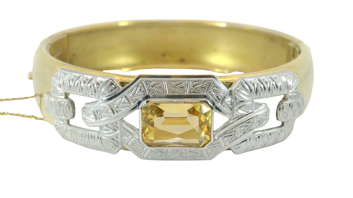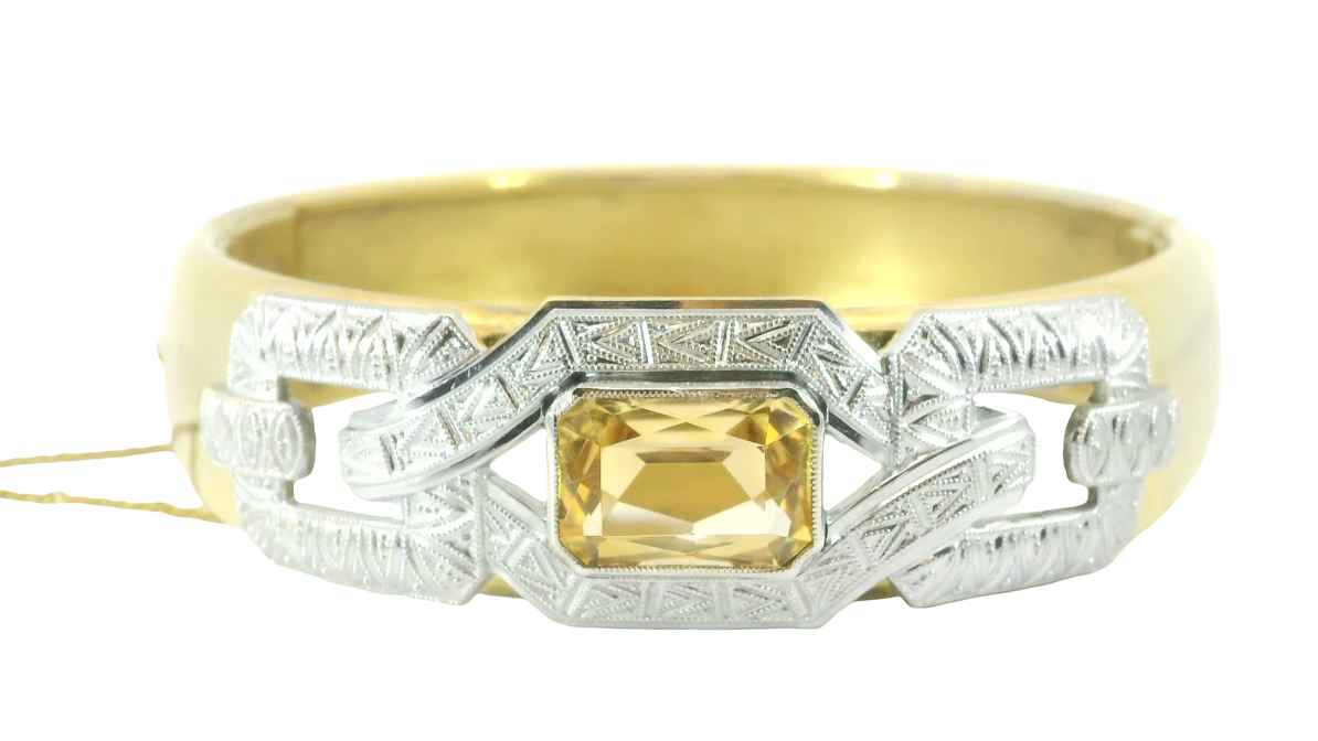 Antiker Art Deco Statement Armreif um 1920 mit Citrin