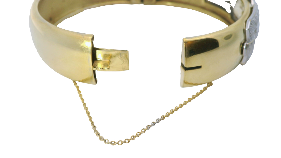 Großer antiker Statement Armreif, Art Deco um 1920, stylischer Klapparmreif, vergoldet,