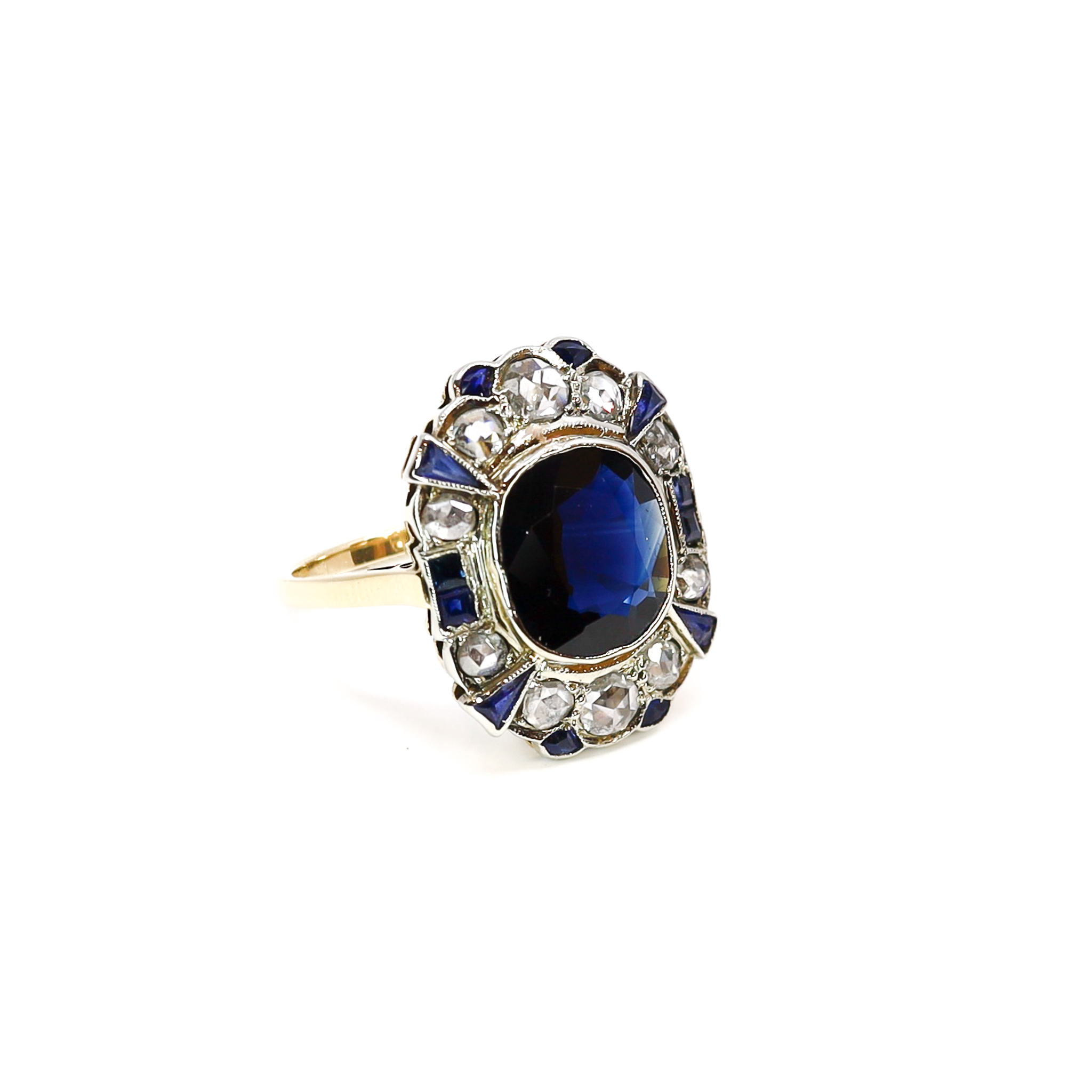 Statement Art Deco Saphir Ring 2,9 Karat Gelbgold Diamantrosen