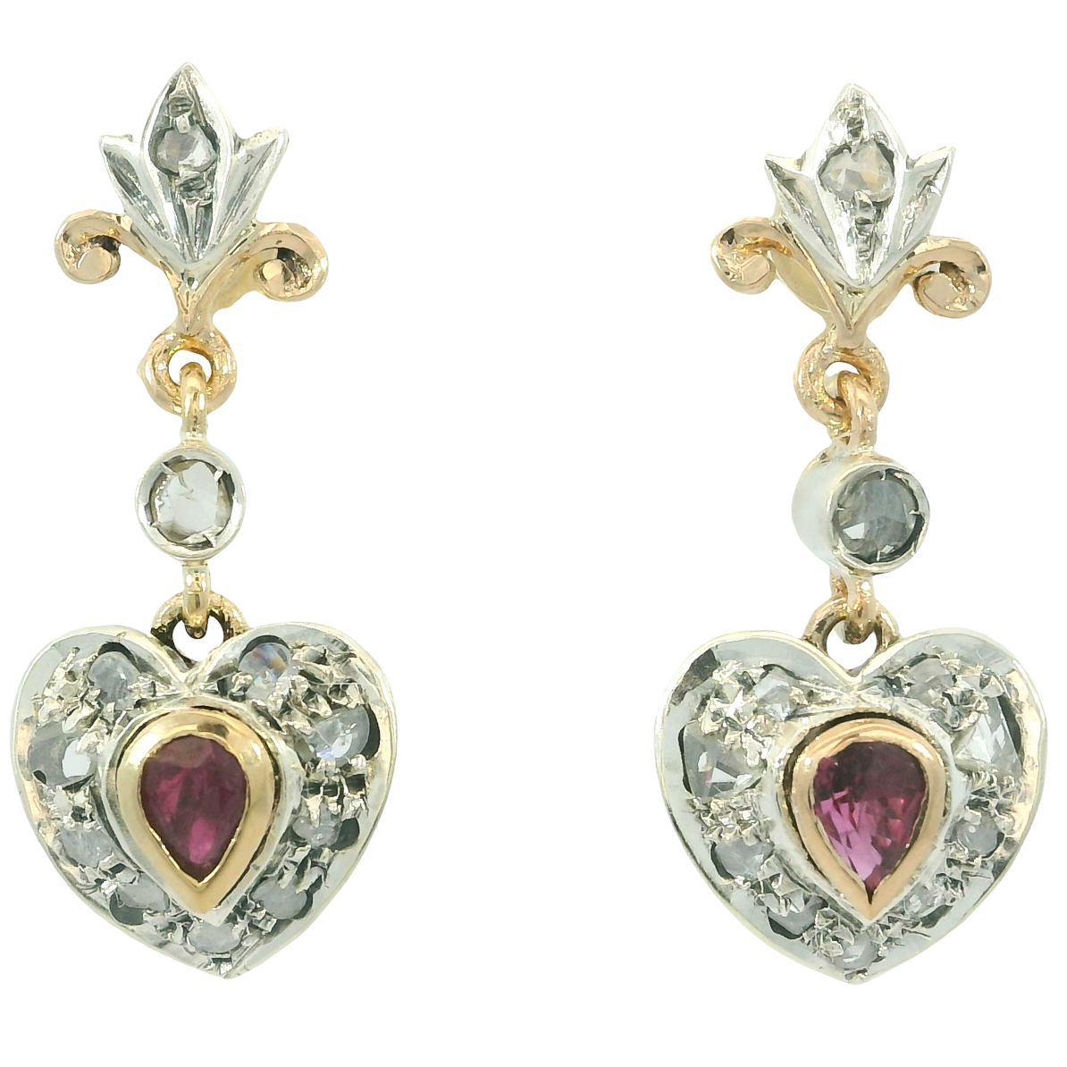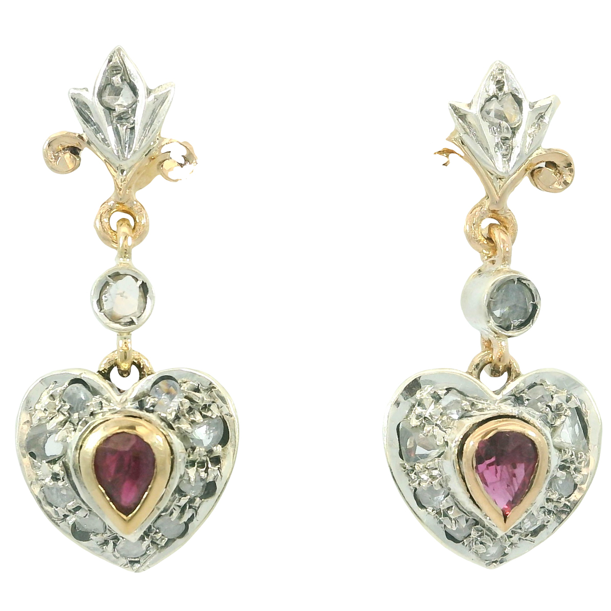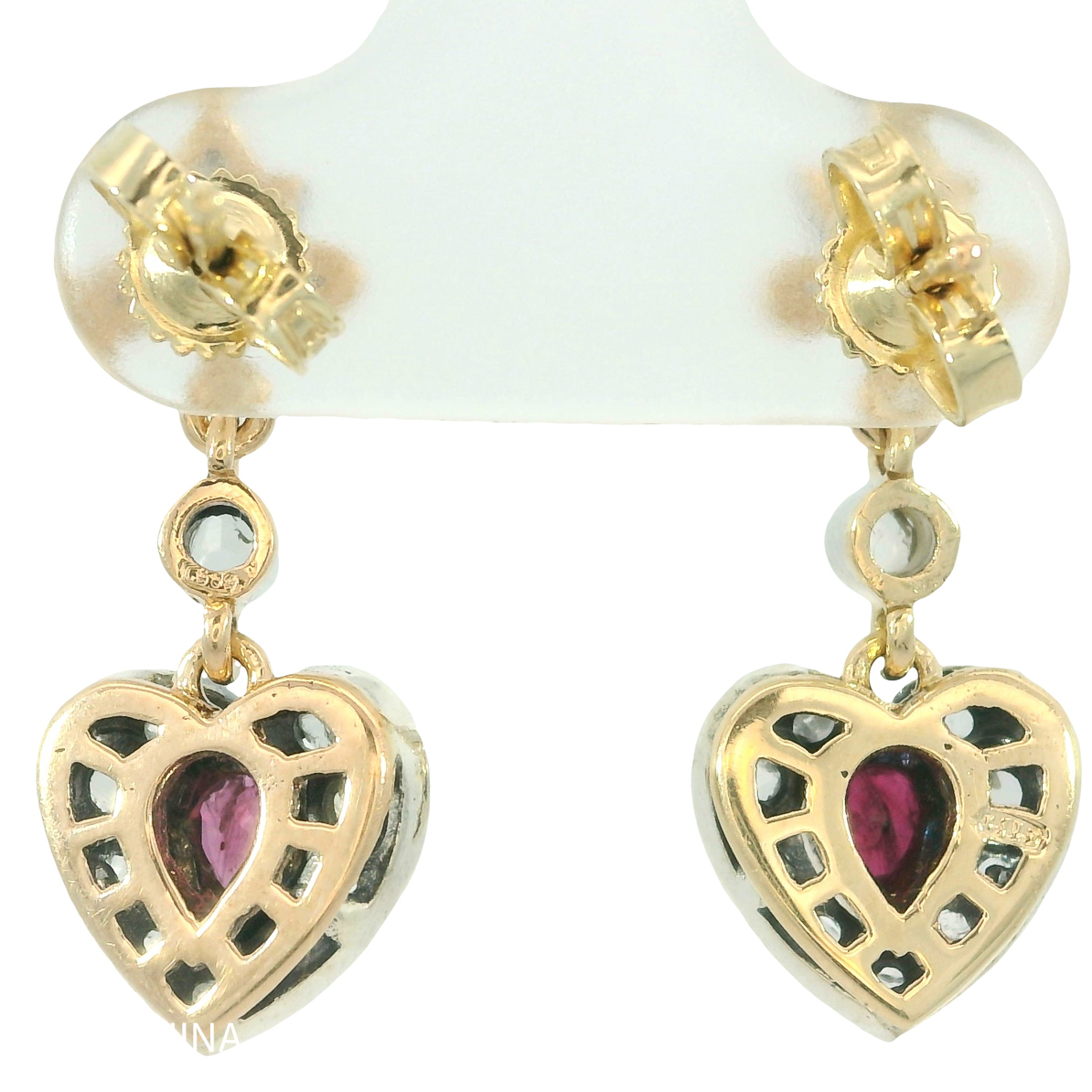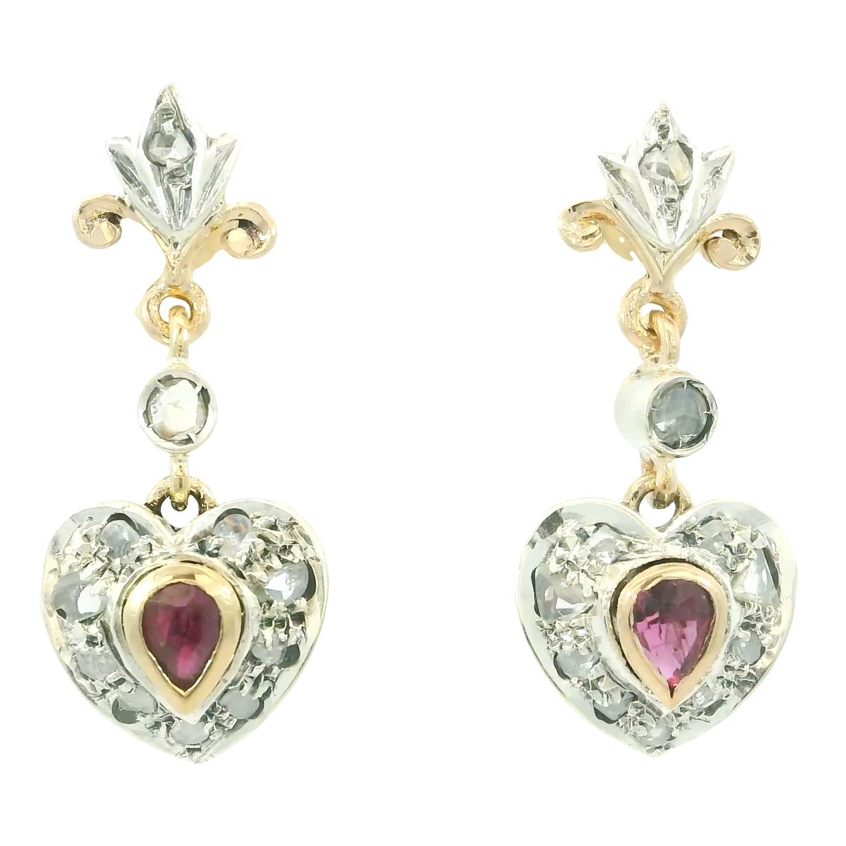 Entzückende Vintage Ohrringe um 1950 Herzform 585 Gold Rubine Diamanten