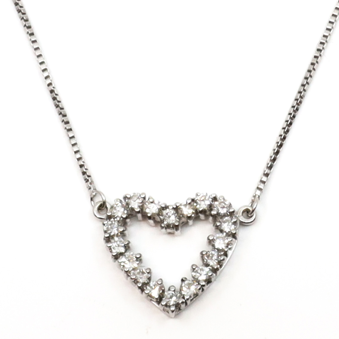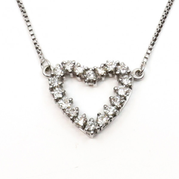 Vintage heart necklace crafted in 14 carat white gold, heart set with sparkling diamonds of approx. 0.25 carat