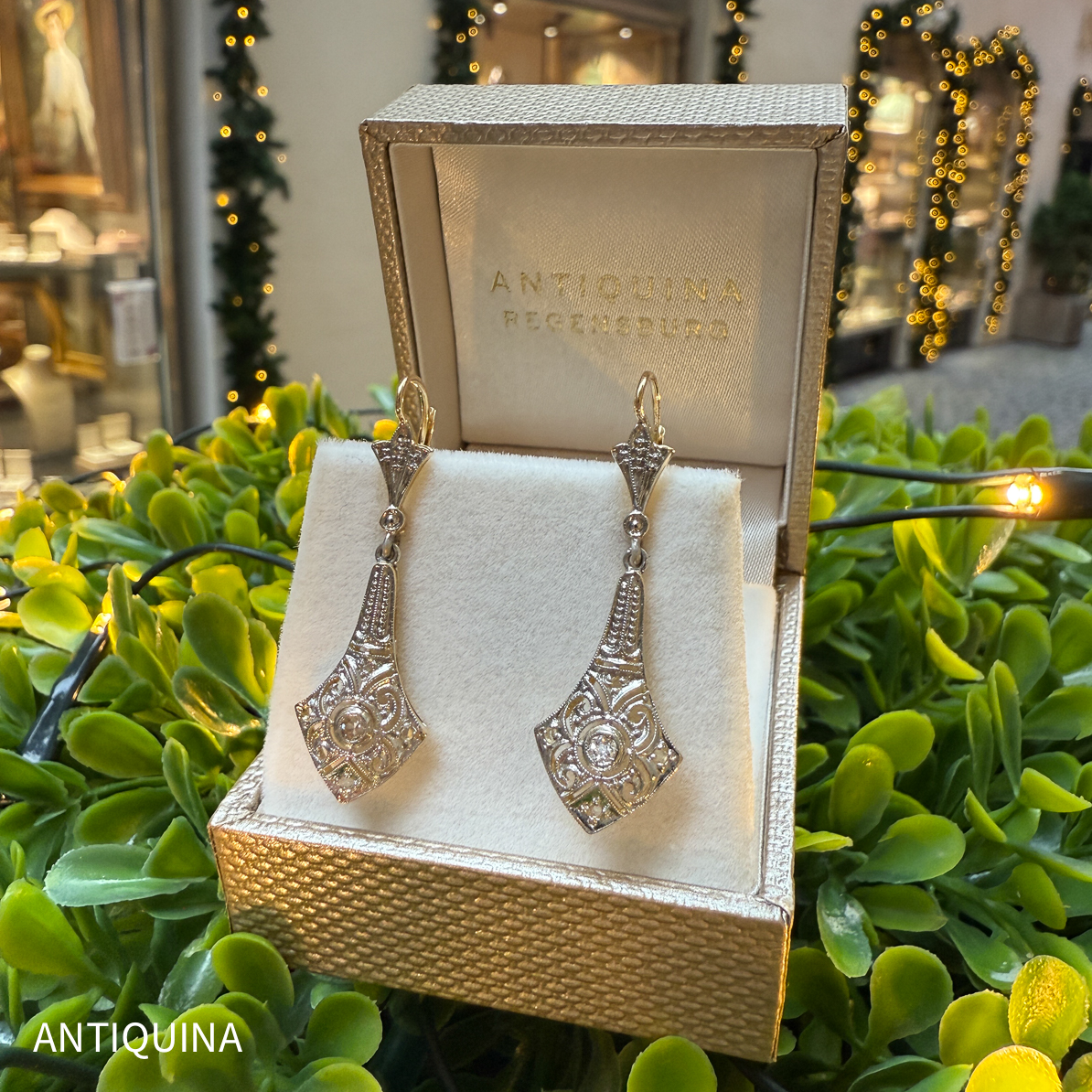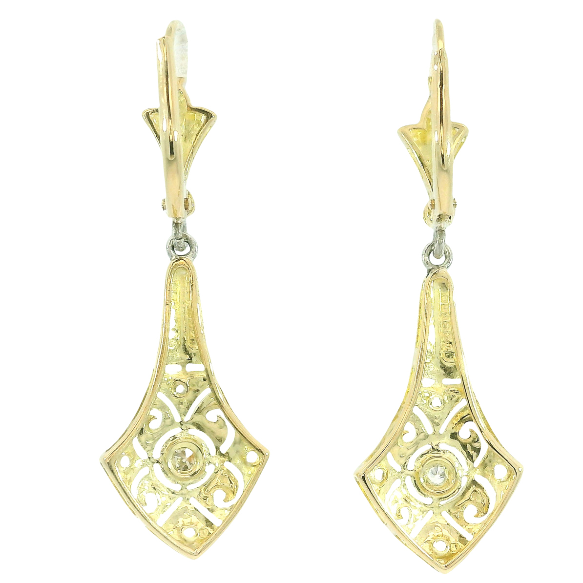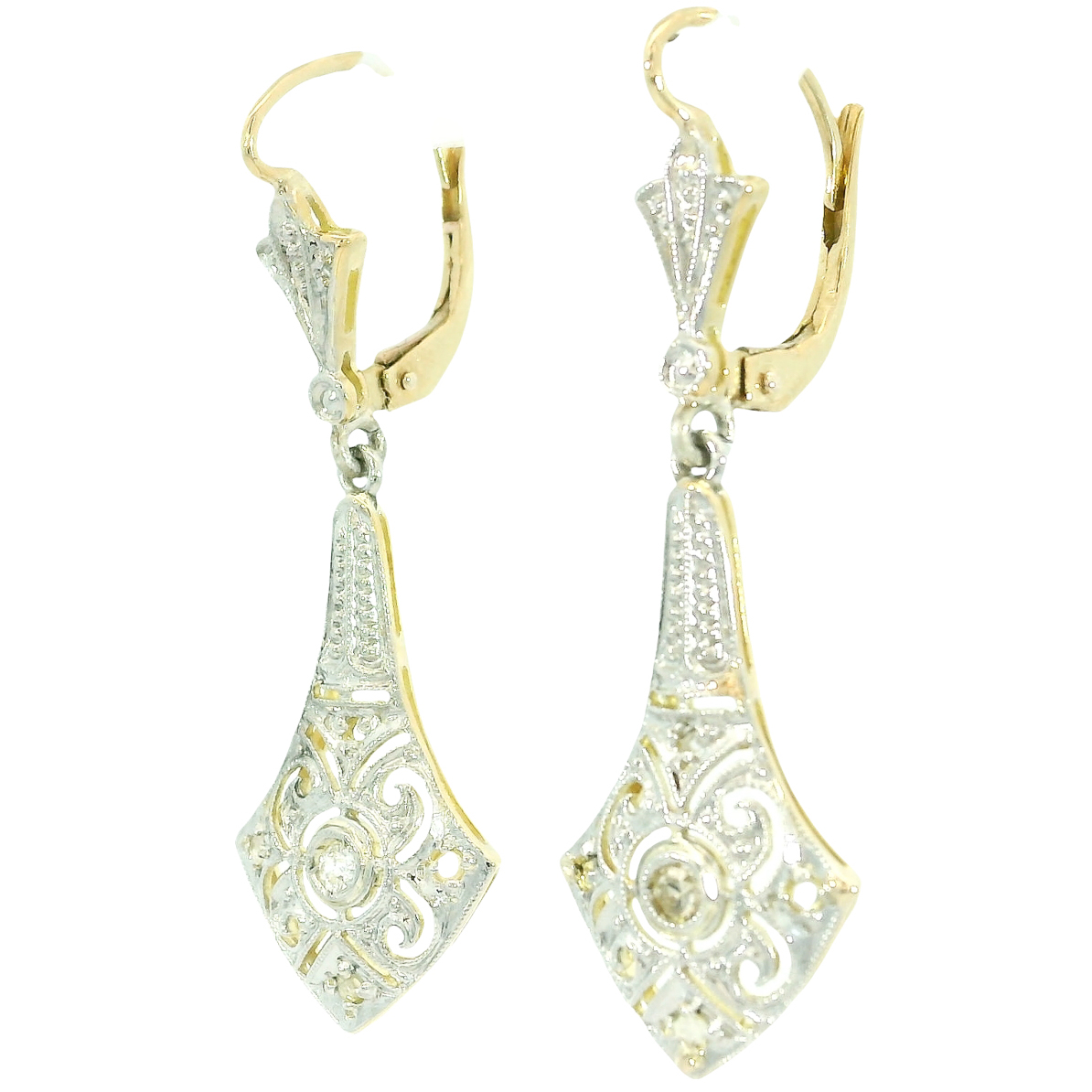 Art Deco Ohrringe 585 Gelbgold Platin Diamanten um 1925/30