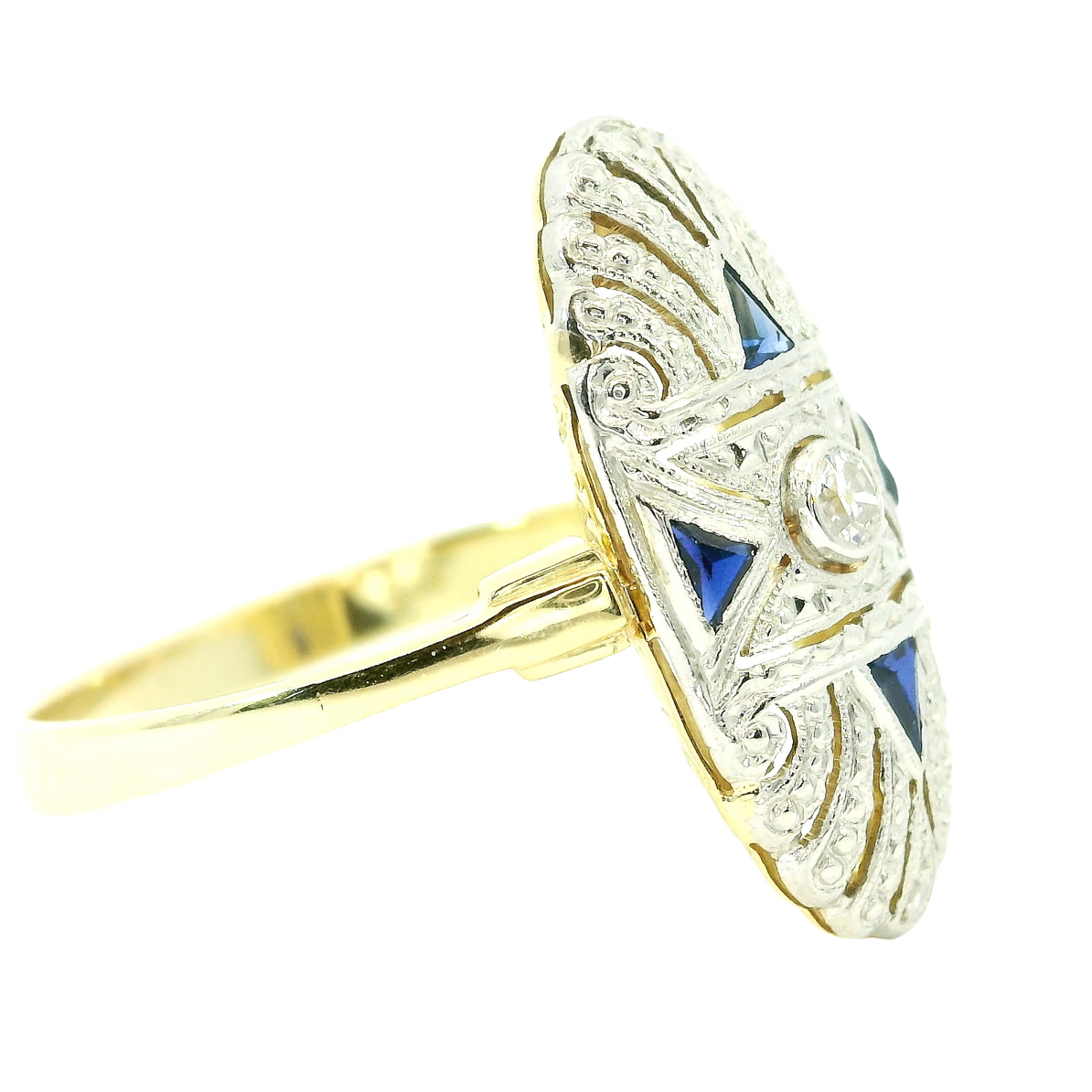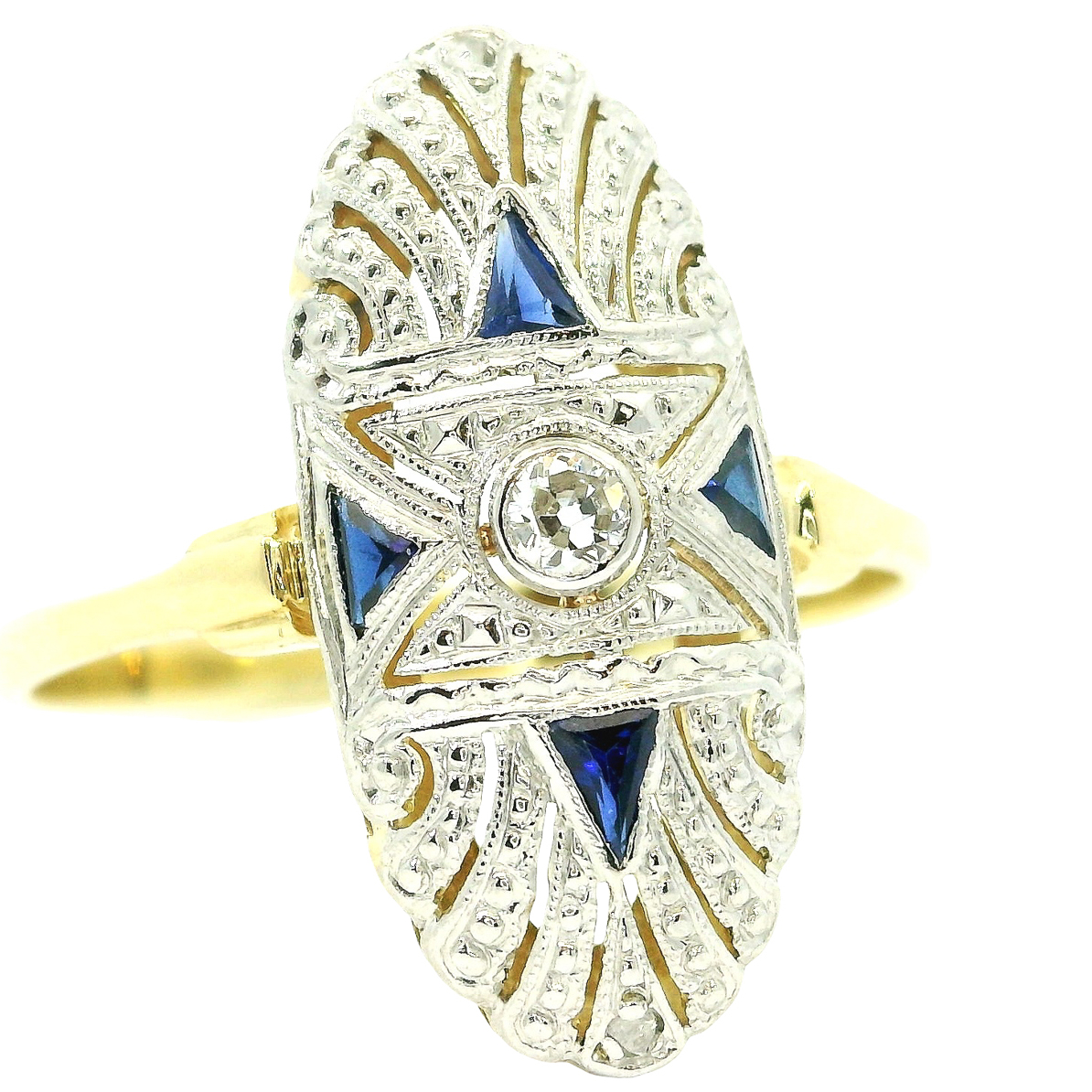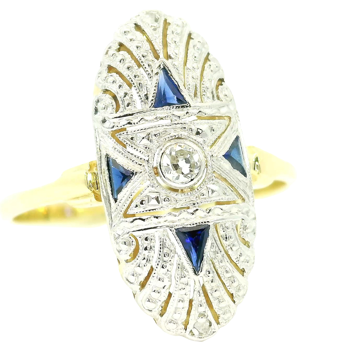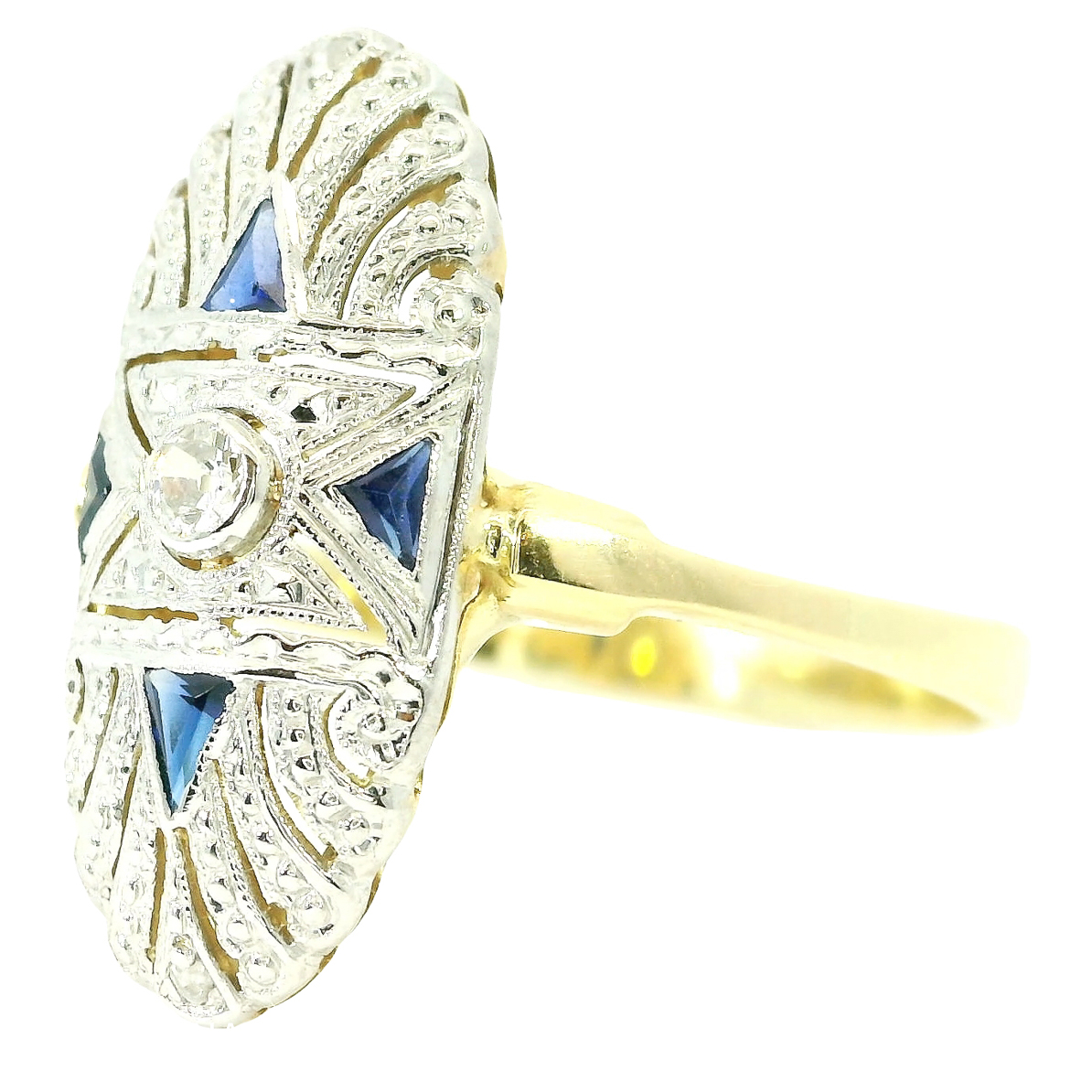 Antique Art Deco ring from around 1930 in 585 yellow gold and platinum with diamonds and sapphires:
