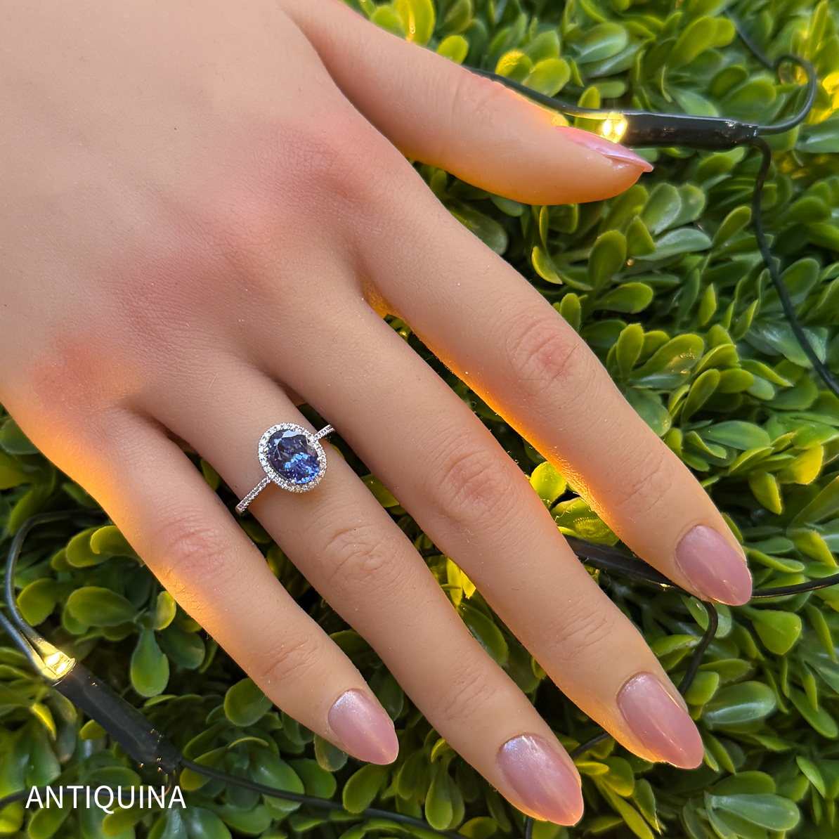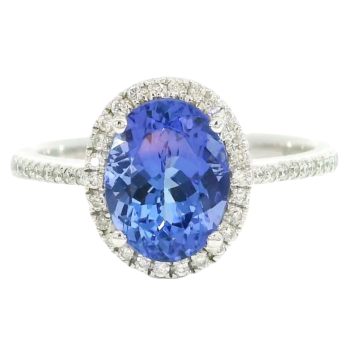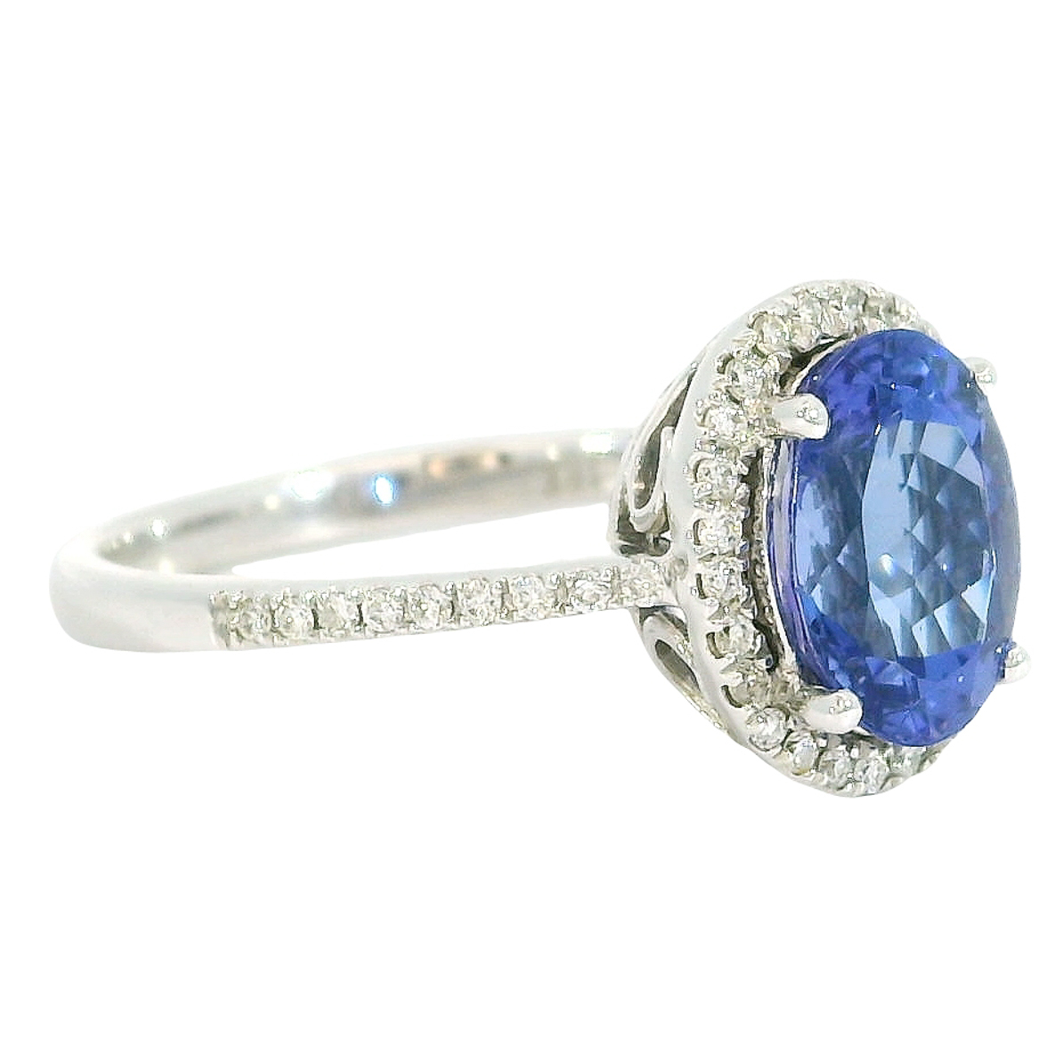 Material: 18 Karat Weißgold, Tansanit im Ovalschliff 2,05 Karat, zzgl. 44 x kleine Brillanten ca.0,17 Karat
