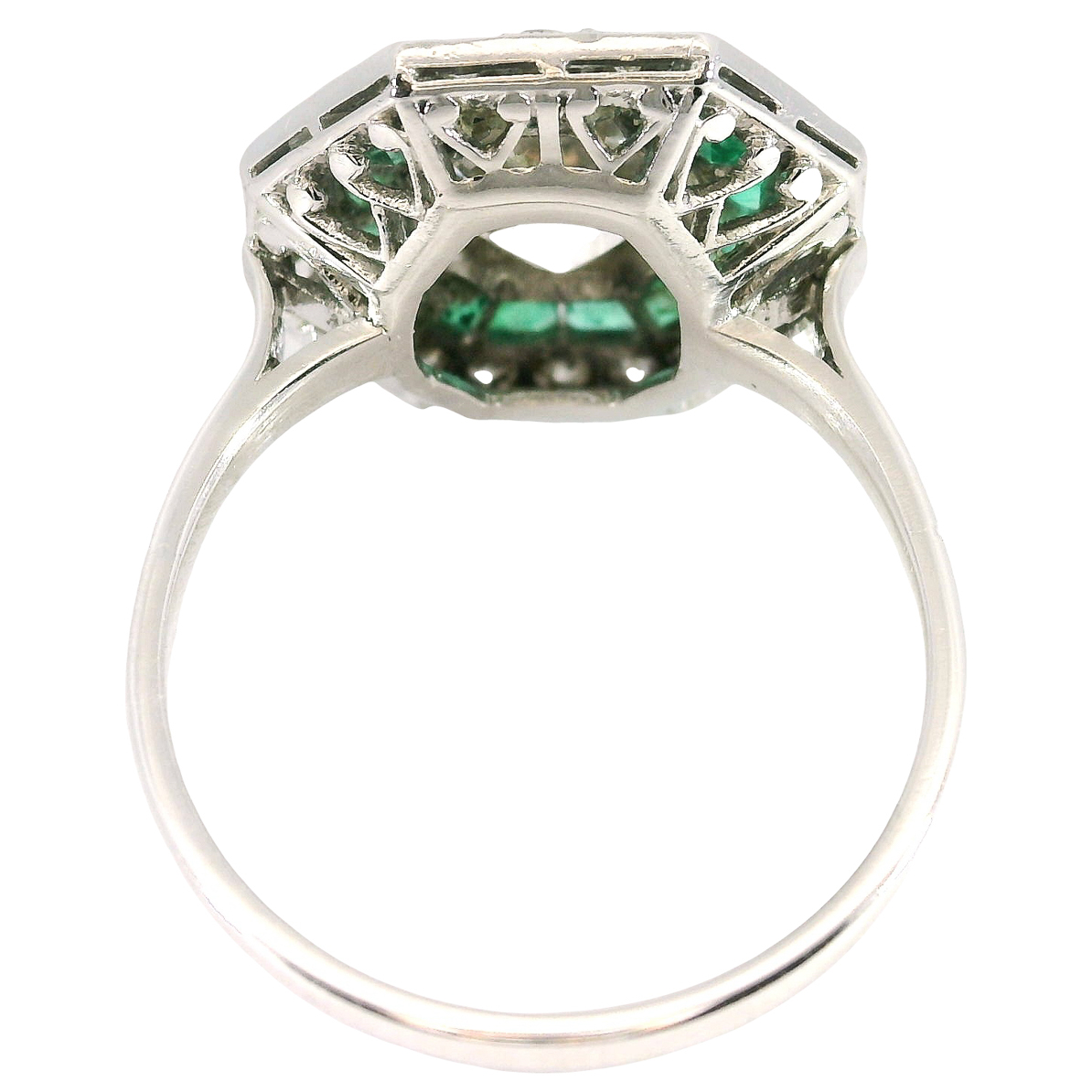 form an octagonal frame. This emerald setting is surrounded by a further row of sparkling