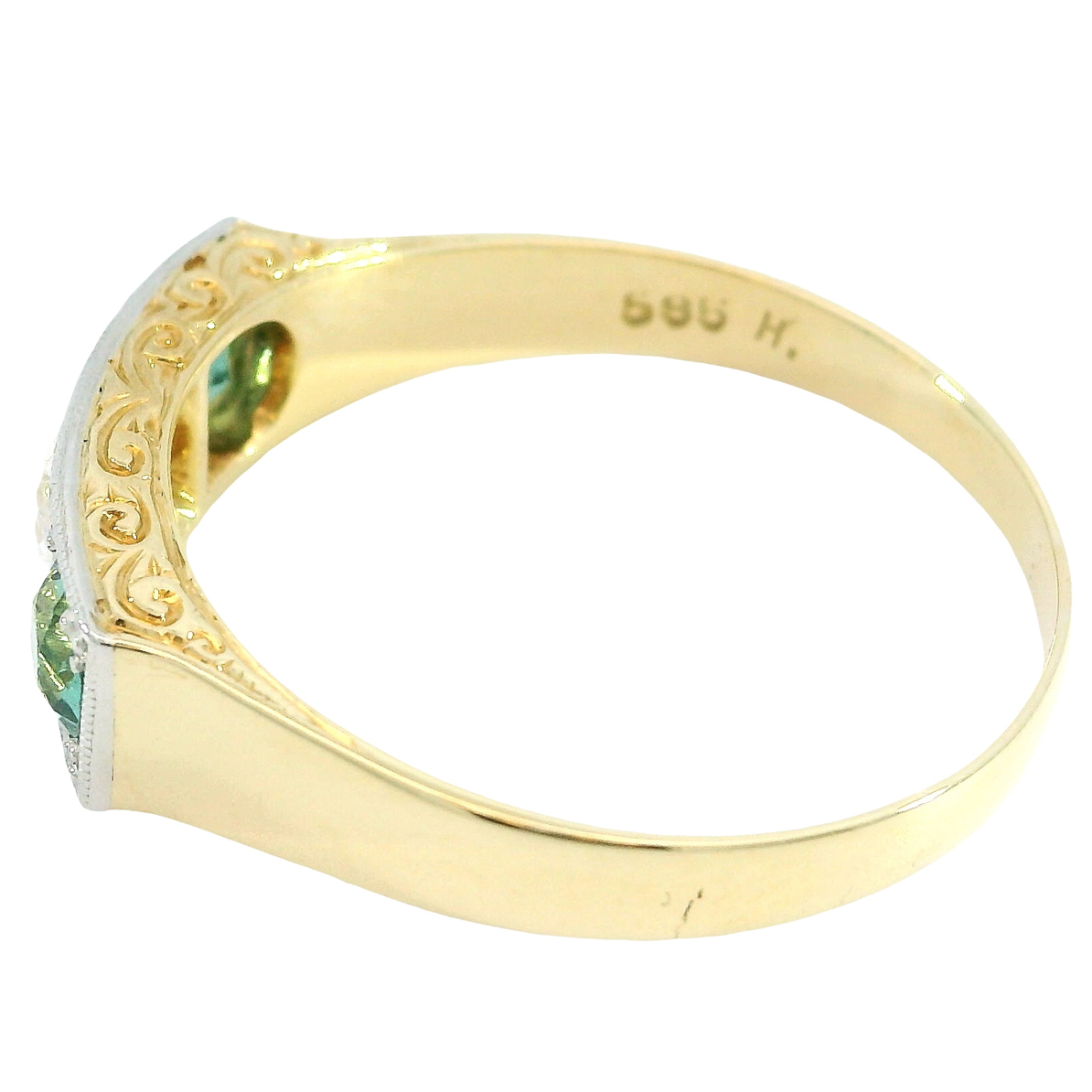The ring head features finely crafted floral hand engravings on the sides.