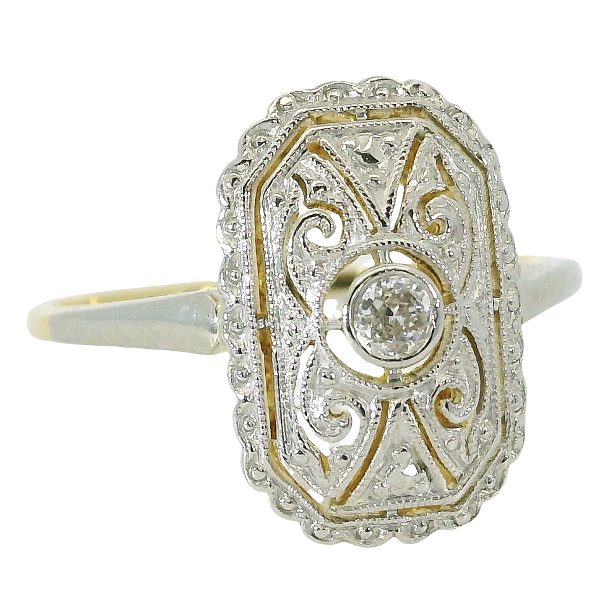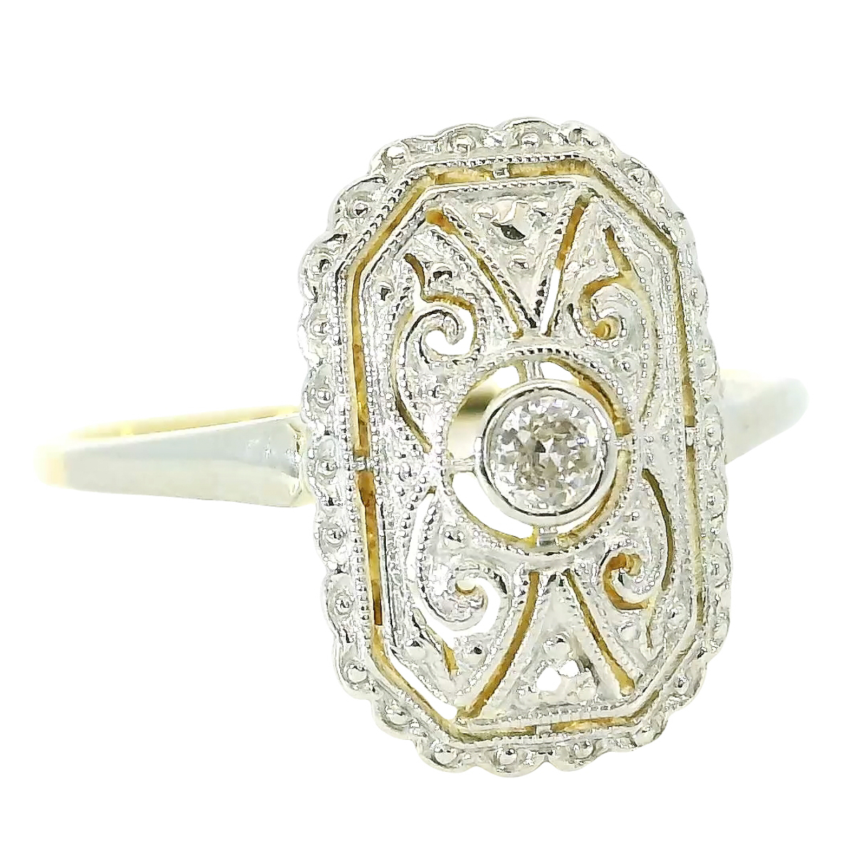 Zarter antiker Art Deco Ring um 1920 14 Karat GG Platin Diamantbesatz