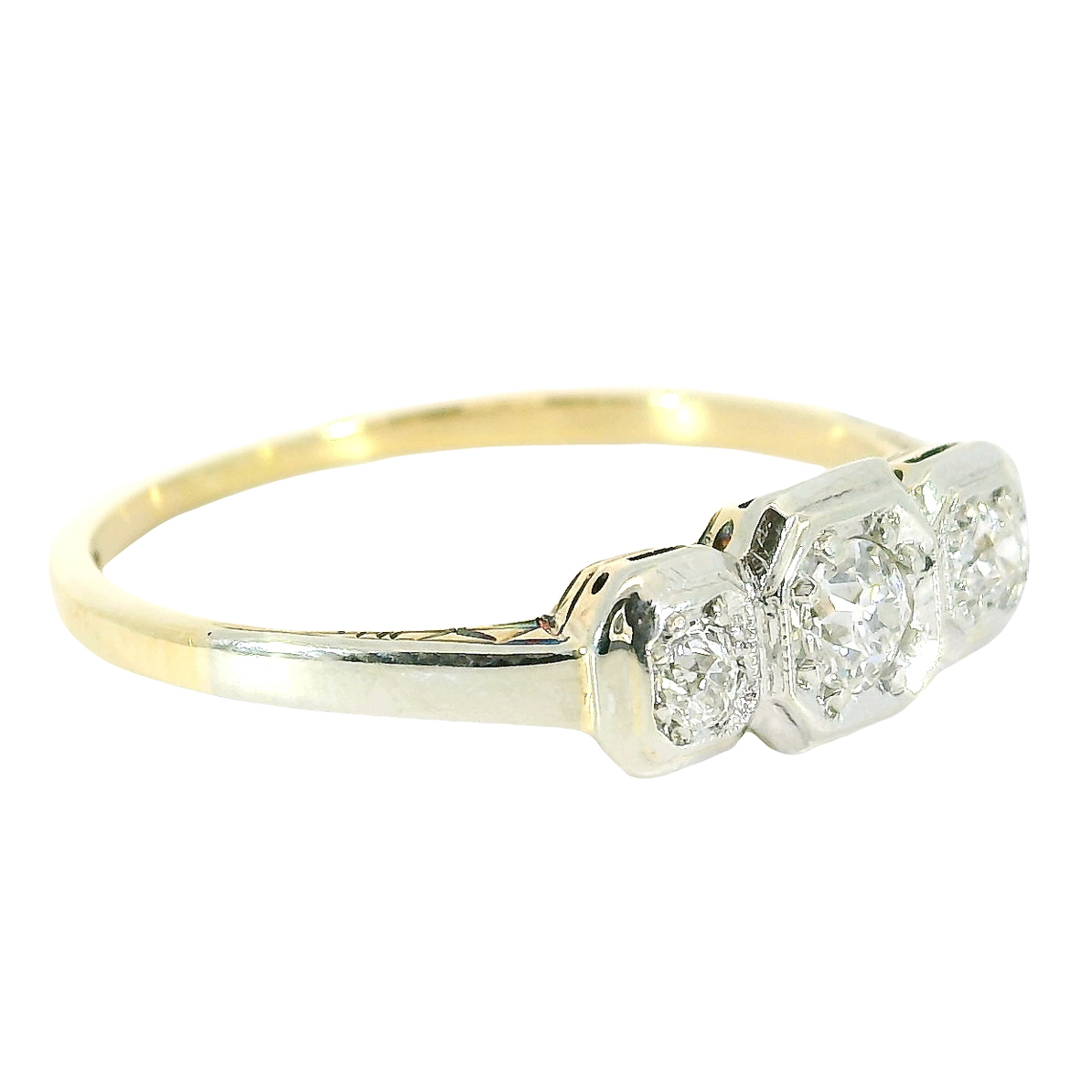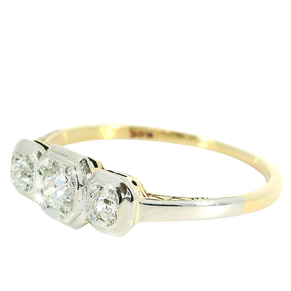 Antiker Art Deco Ring um 1920 14 Karat GG Platin Diamanttrio