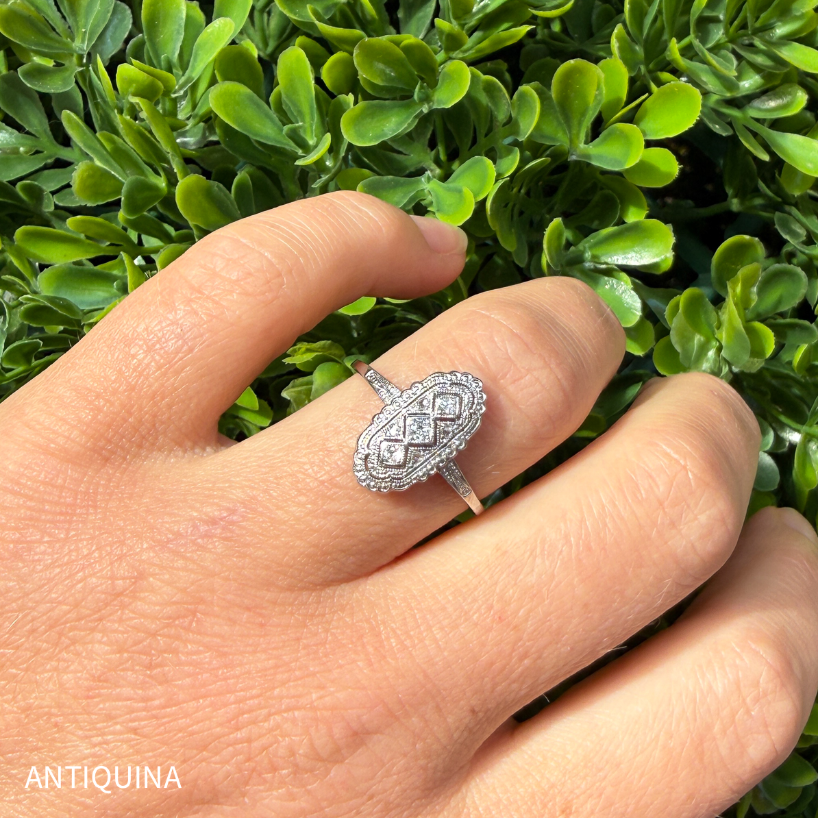 Art Deco Ring um 1925/30 in 585 WG Diamanten