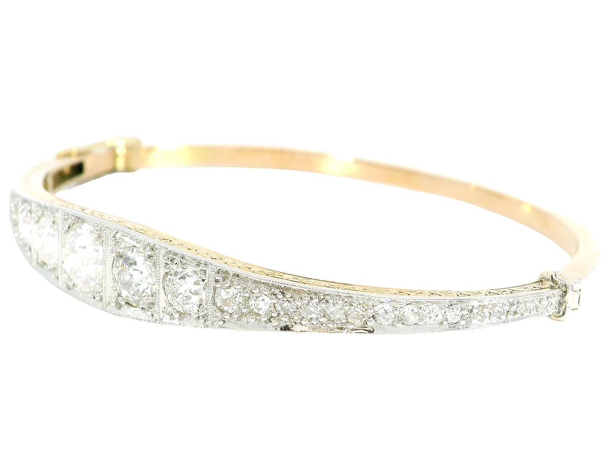 Exclusive Art Deco bangle from around 1920 750 gold / platinum Diamonds 2,65 carat