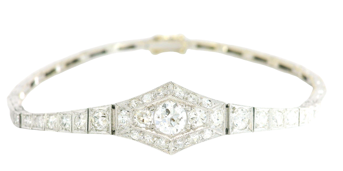 Atemberaubendes, exklusives und antikes original Art Deco Armband, gearbeitet in Platin,