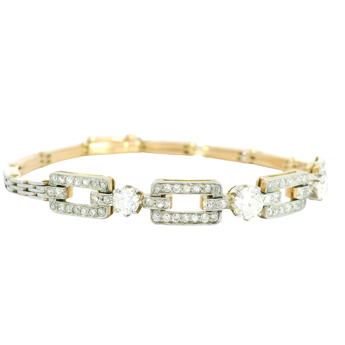 English Art Deco bracelet in 15 carat gold with diamonds, circa 1925