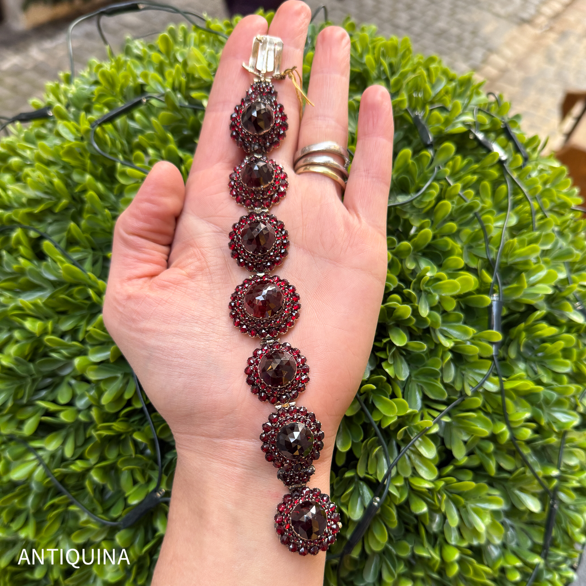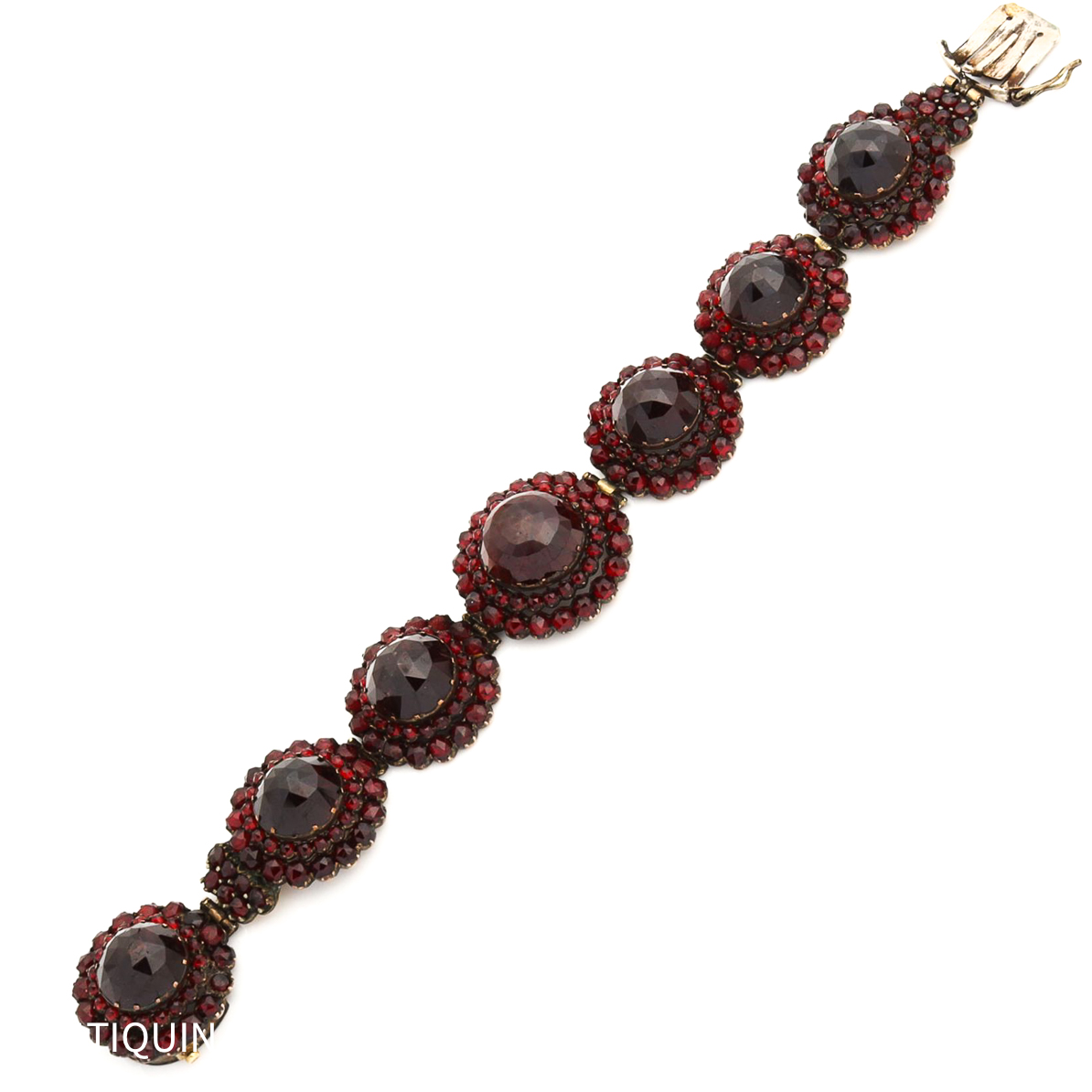 Such a large garnet bracelet from this period, richly set with flowers, is rarely found on the market today