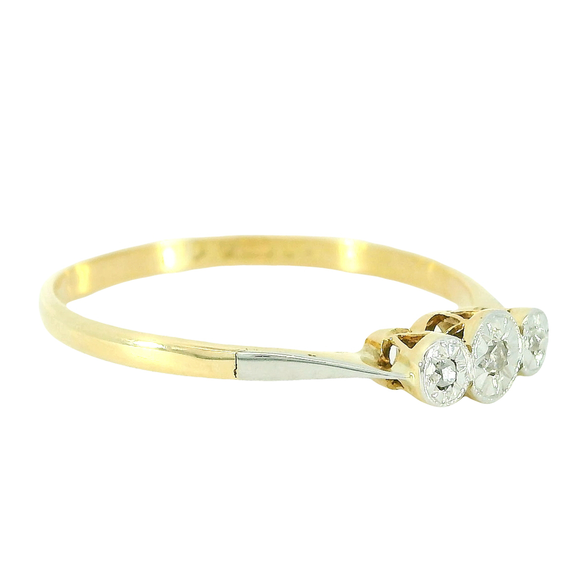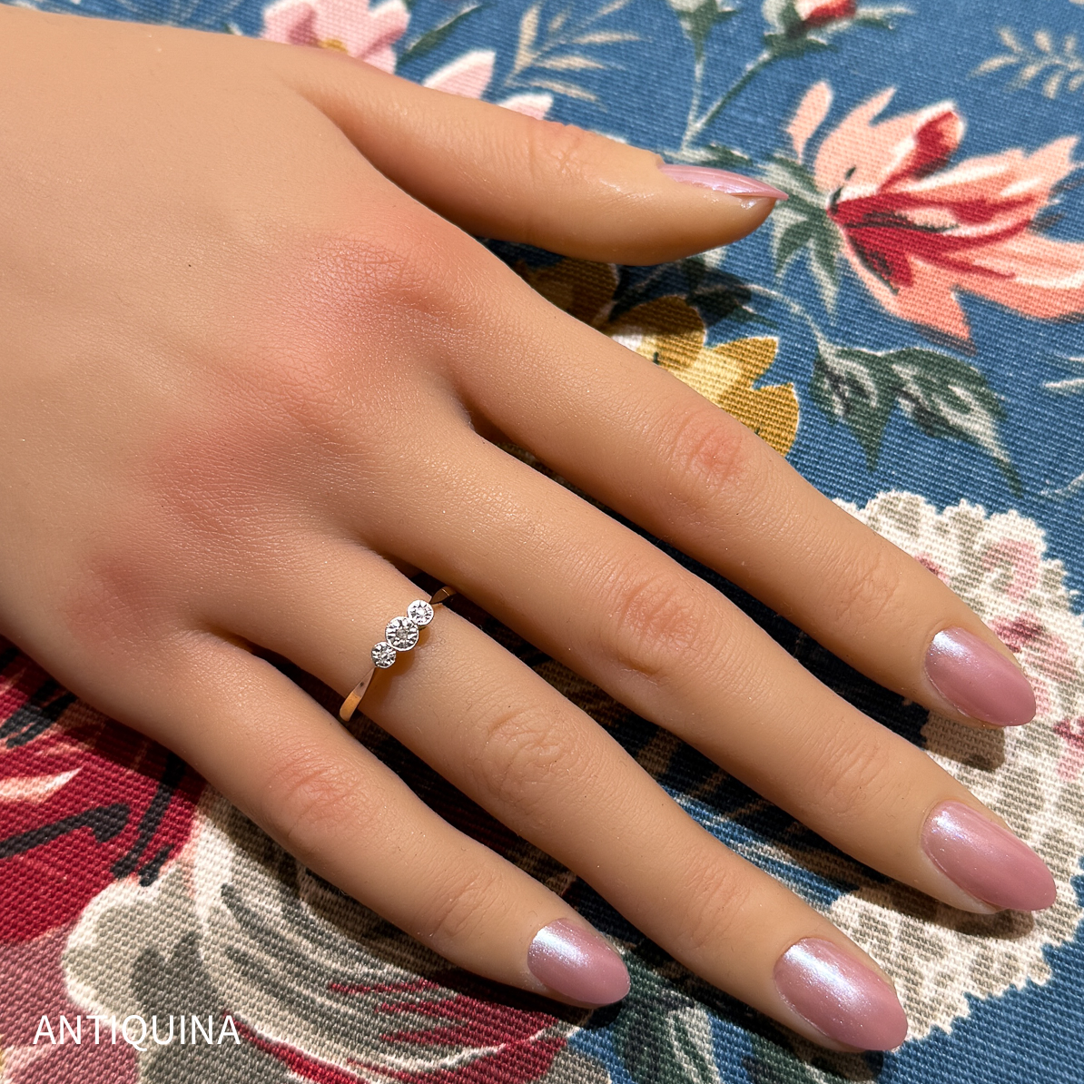 Zarter Art Deco Ring 18 Karat Gold & Platin mit Diamantrosen um 1920
