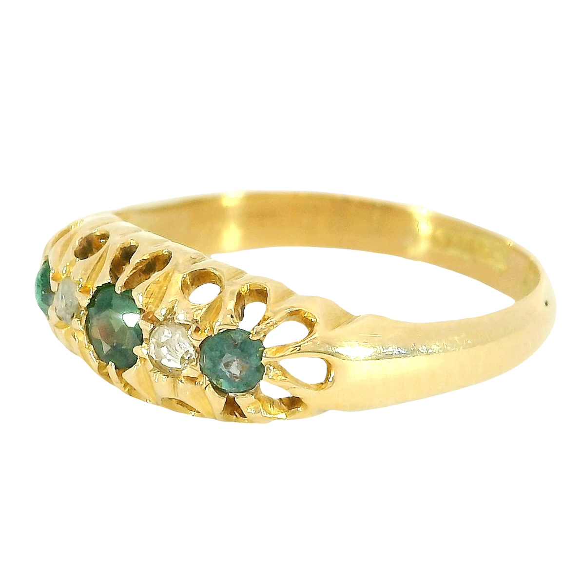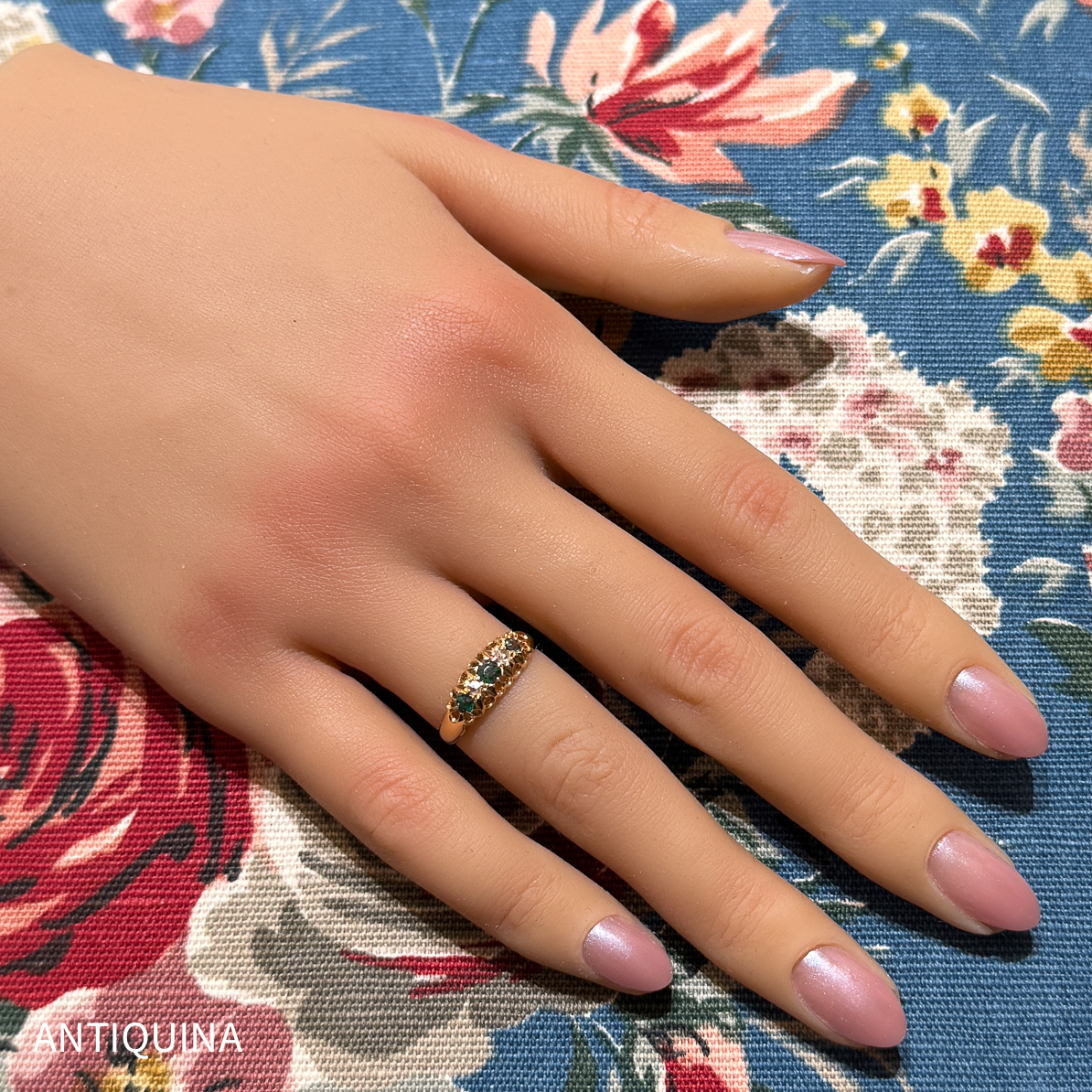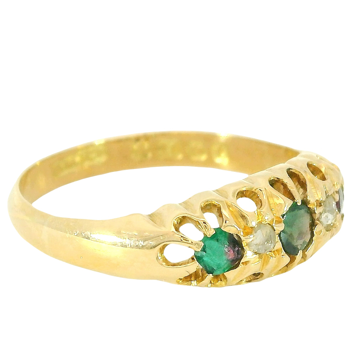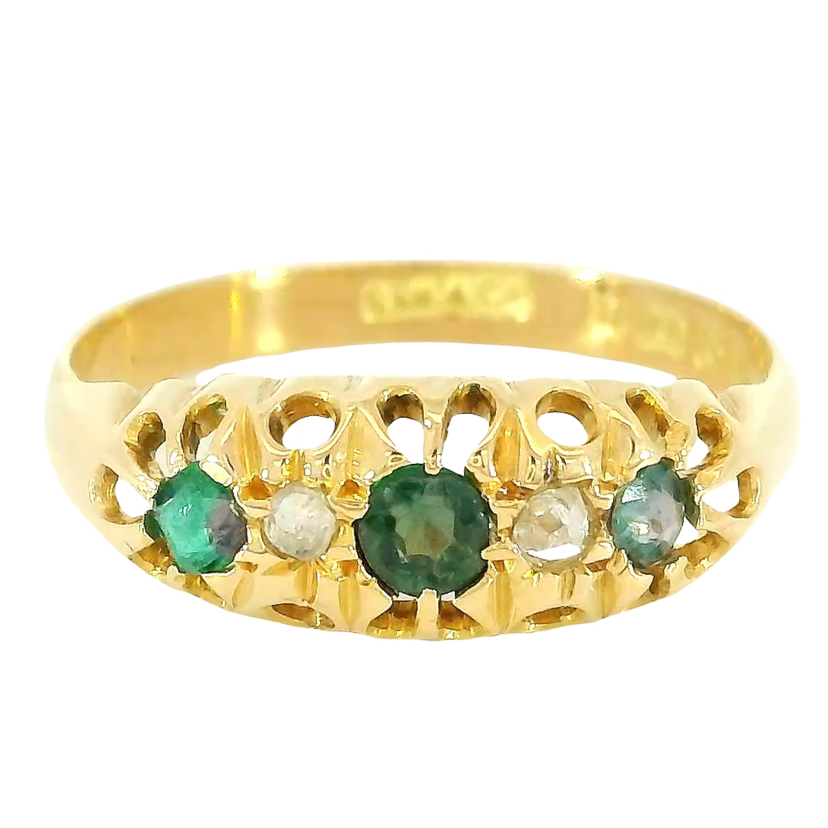 Antiker Ring 18 Karat Gelbgold Diamanten und Smaragde um 1930/40