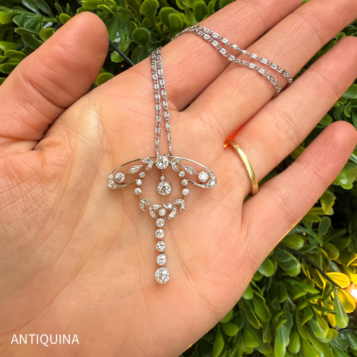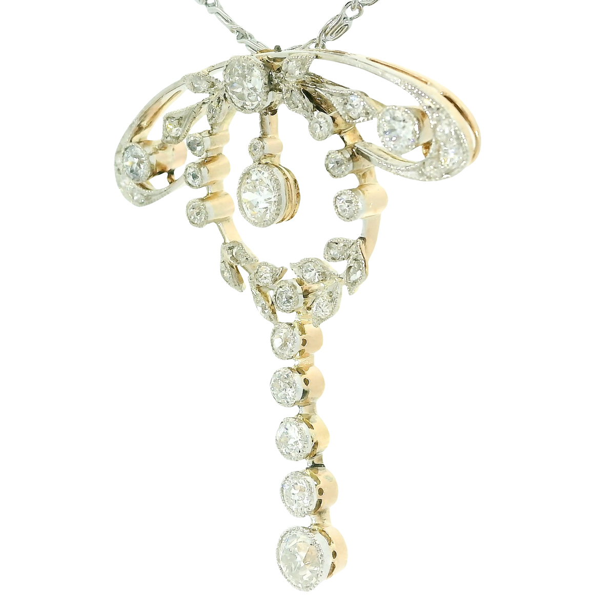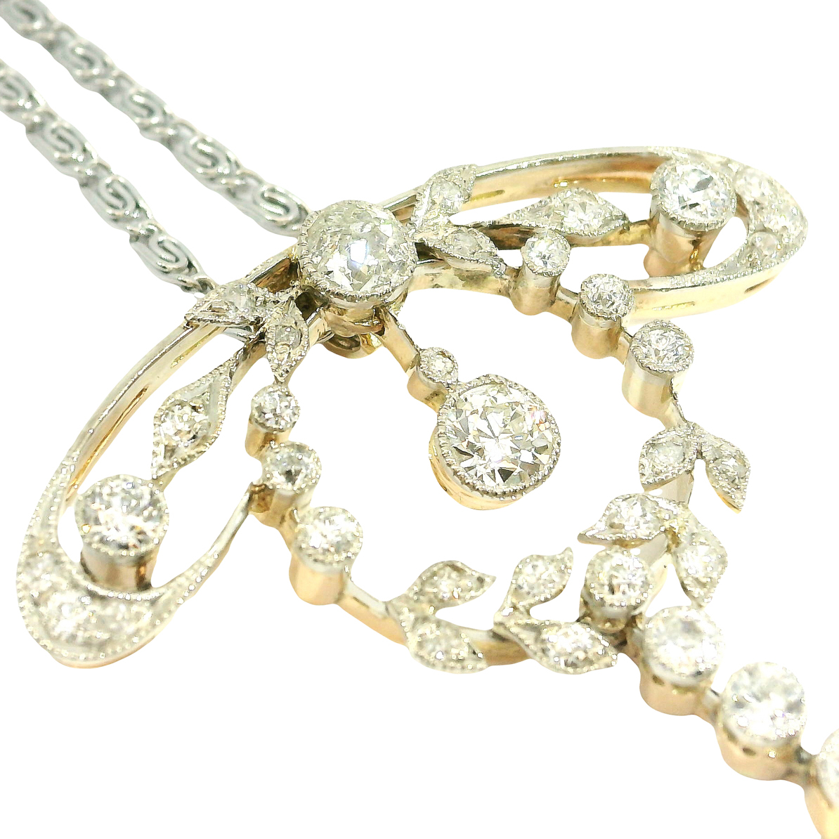Antiker Jugendstil Anhänger 585 GG / Platin Diamanten um 1900