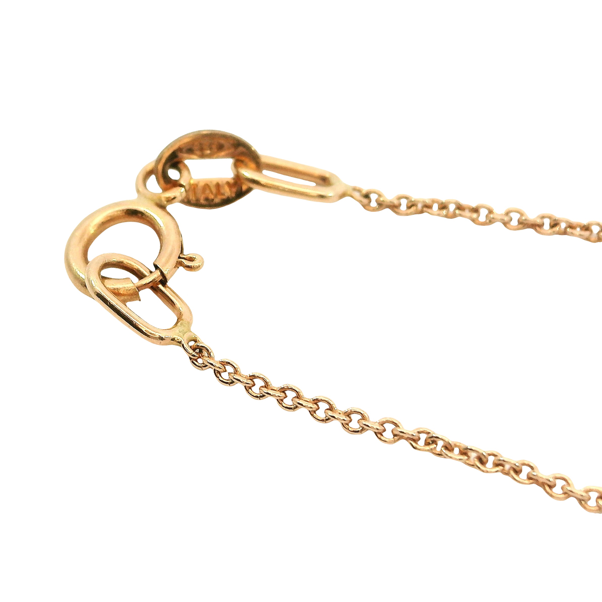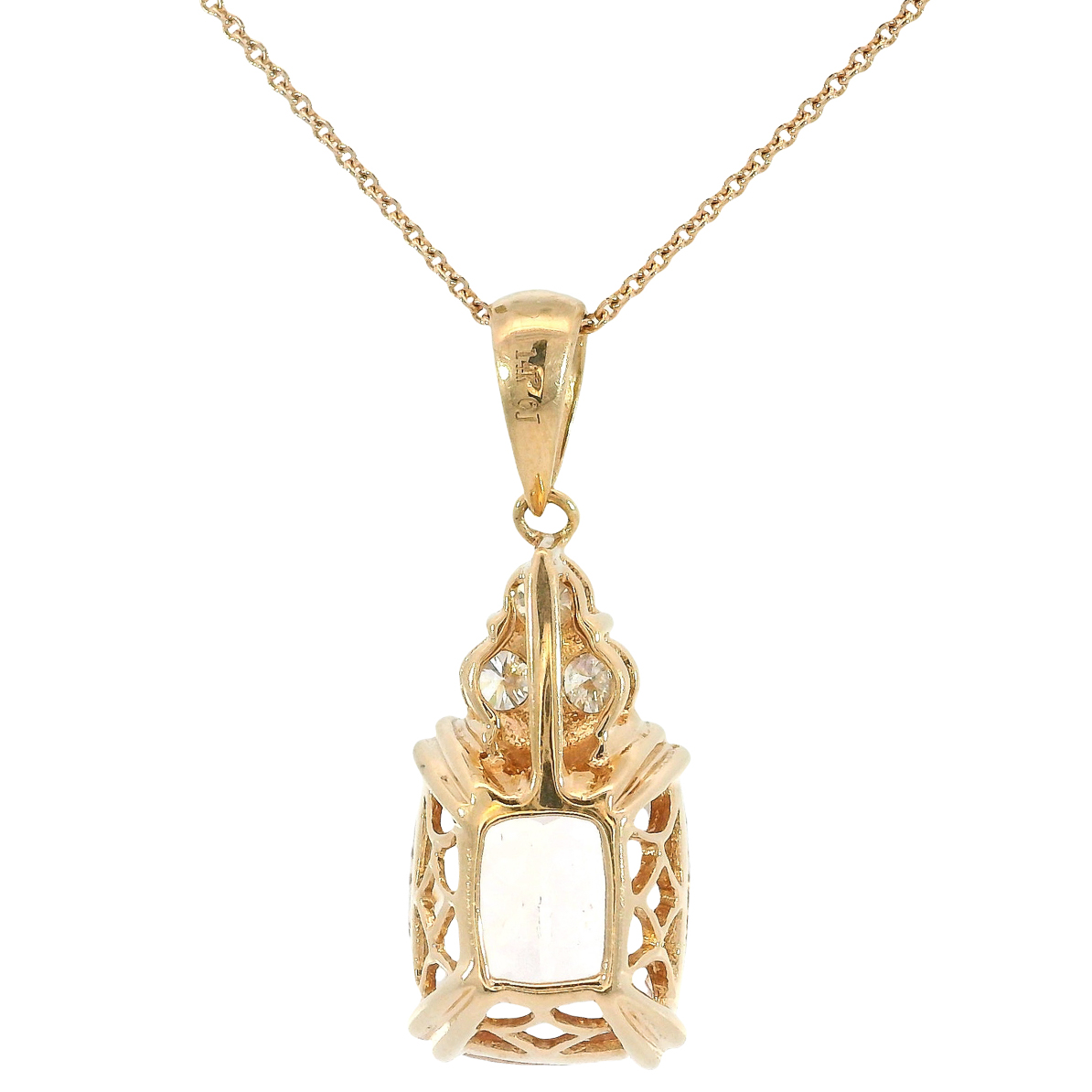 The pendant and chain are made from precious 14 carat rose goldwhose warm, gently shimmering tone uniquely accentuates the central gemstone