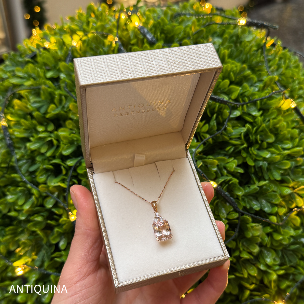 Exclusive pendant with chain 585 rose gold morganite 5 carat Diamonds 0.4 carat
