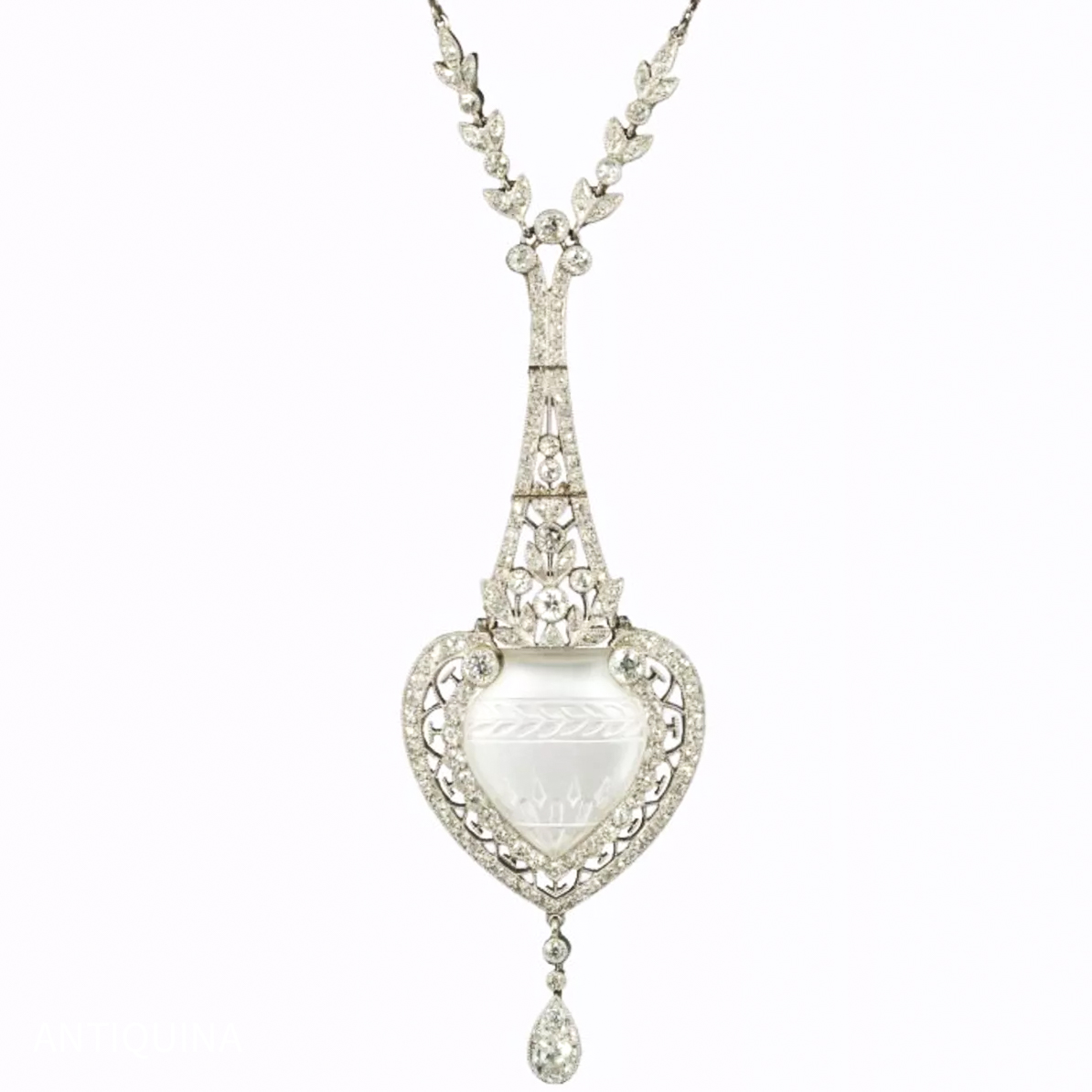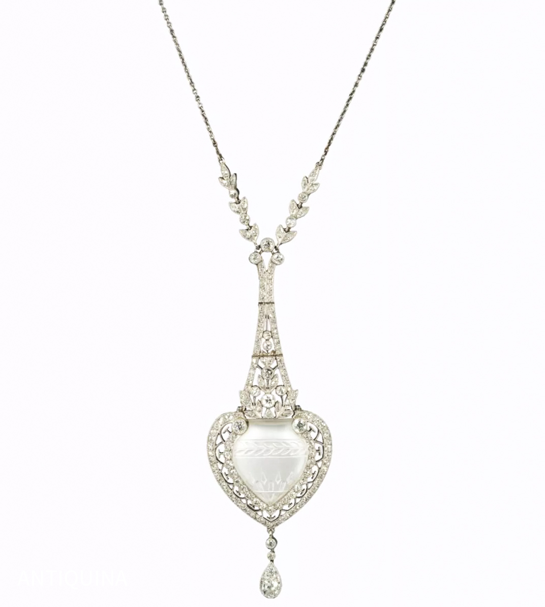 Vollständig in edlem Platin gearbeitet, zeigt es die für diese Zeit typische Leichtigkeit und zugleich höchst raffinierte Ausführung,