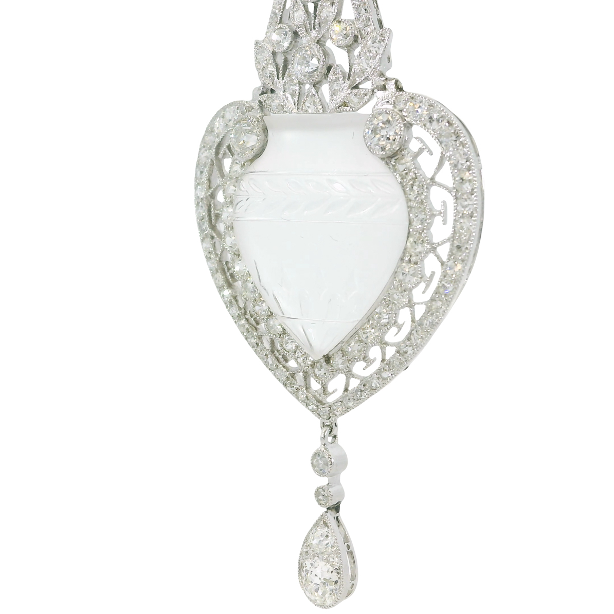 Im Zentrum dieses Meisterwerks befindet sich ein geschnittener Bergkristall von besonderer Schönheit, der in Form einer Amphore gearbeitet ist.