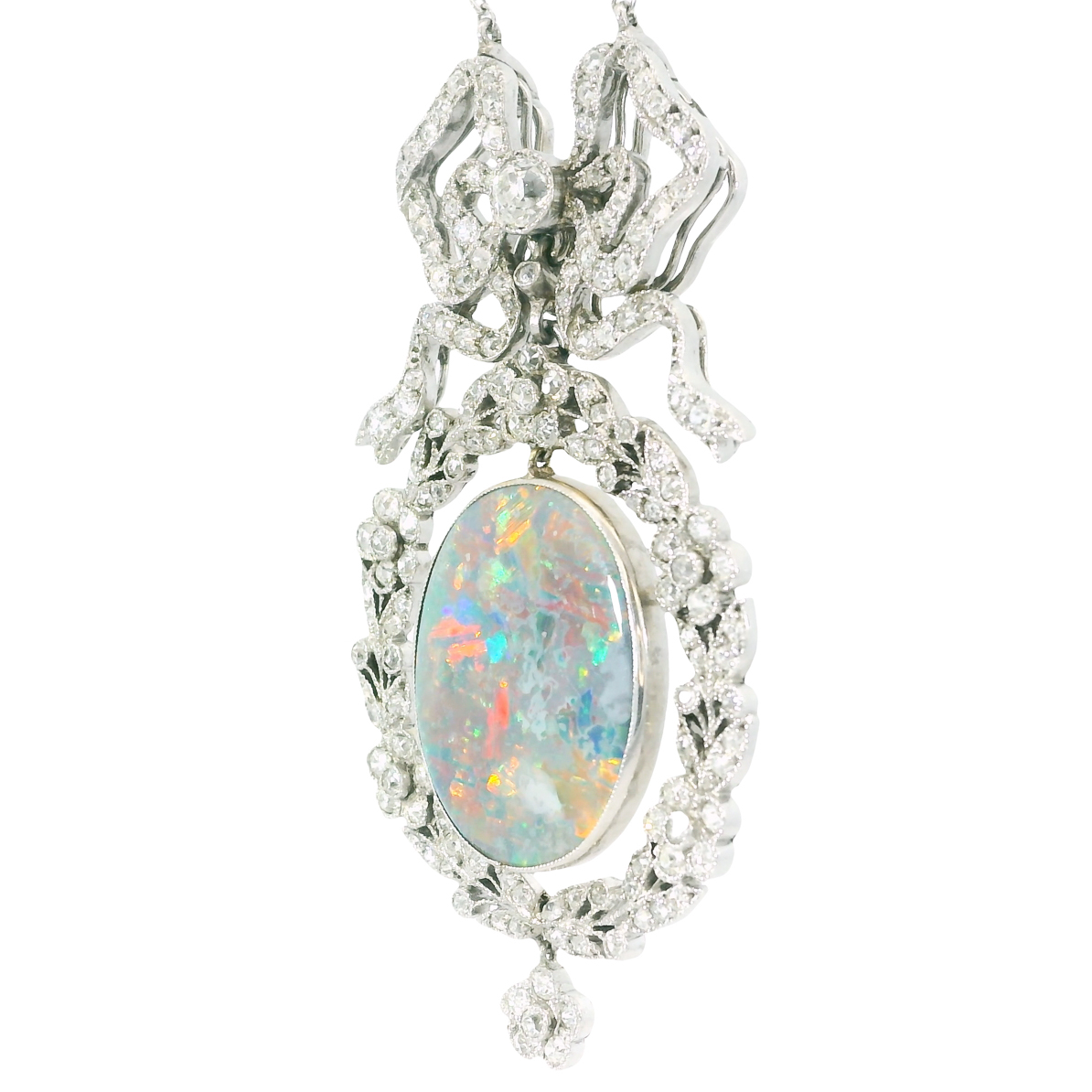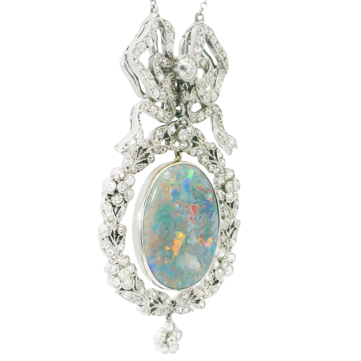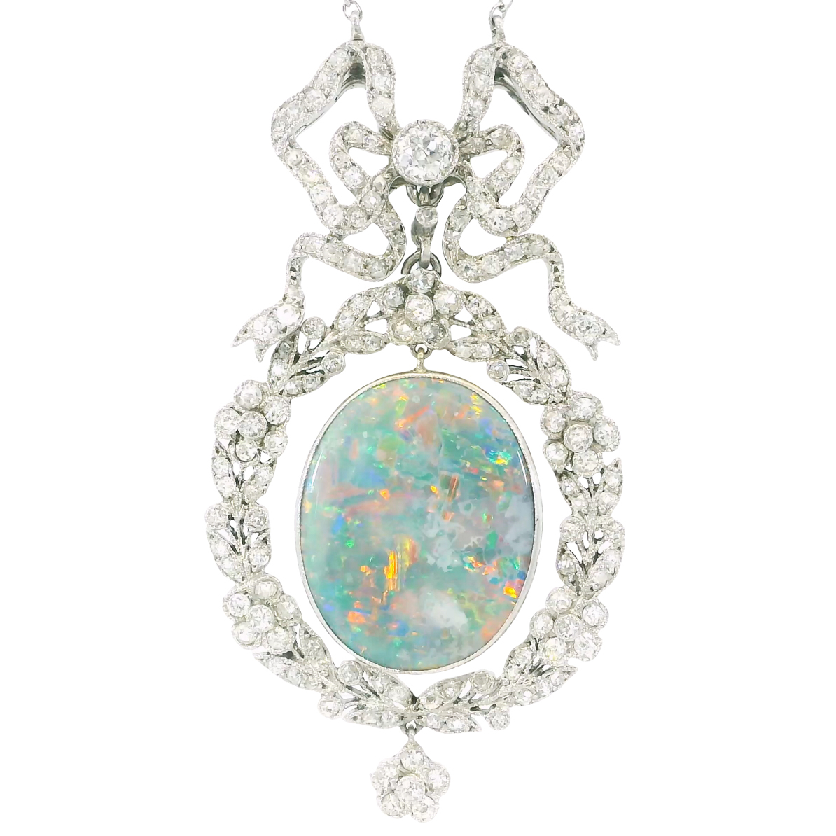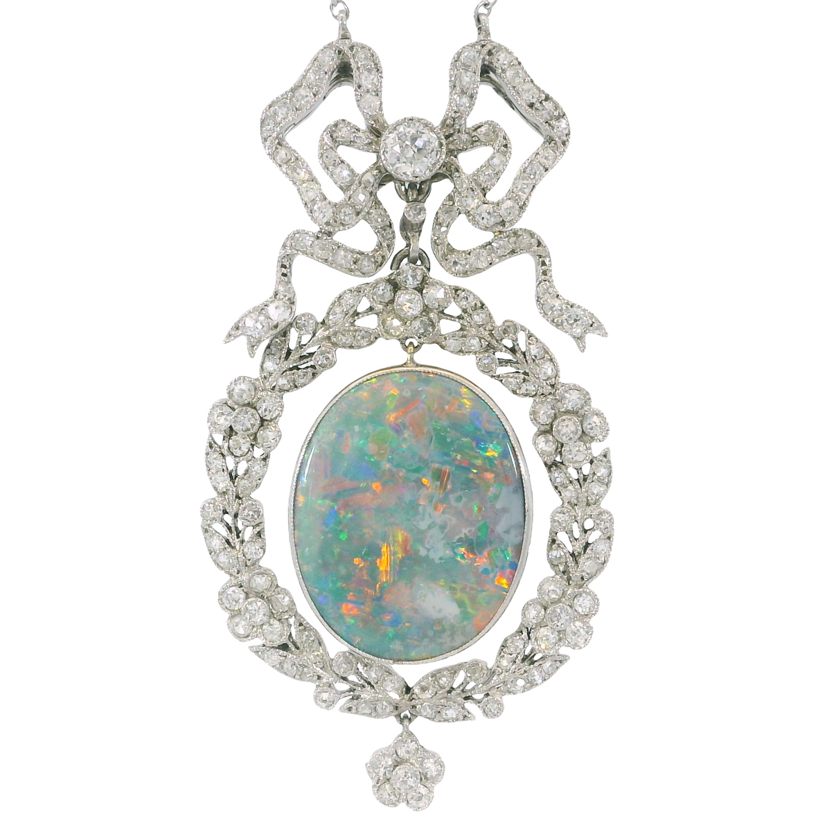 Material: Platin, schwarzer Opal ca. 6 Karat, 149 x kleine Altschliff Diamanten zus. ca. 2,5 Karat,