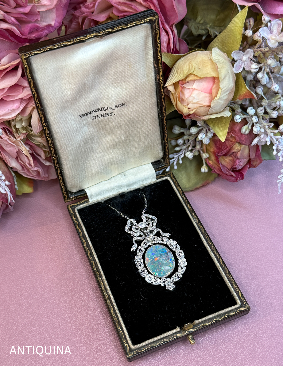 Antikes Belle Epoque Collier um 1890 Platin 2,4 Karat Diamanten & schwarzer Opal 6 Karat